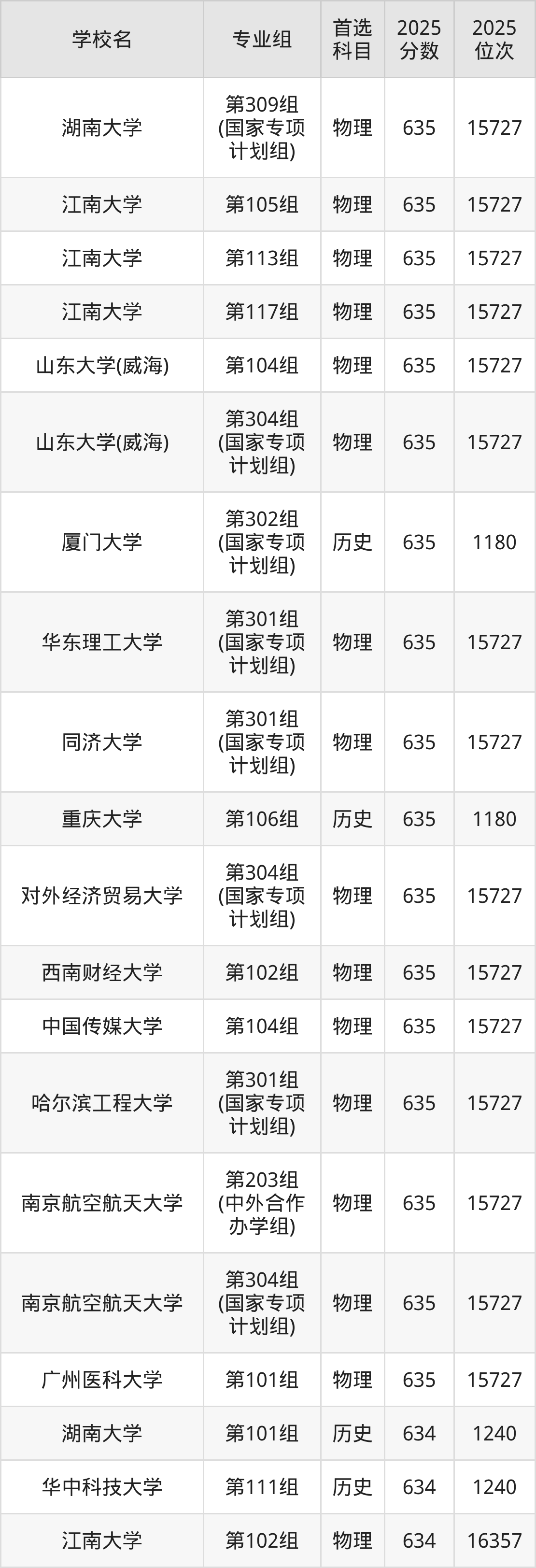 1、河南高考:湖南大学、江南大学