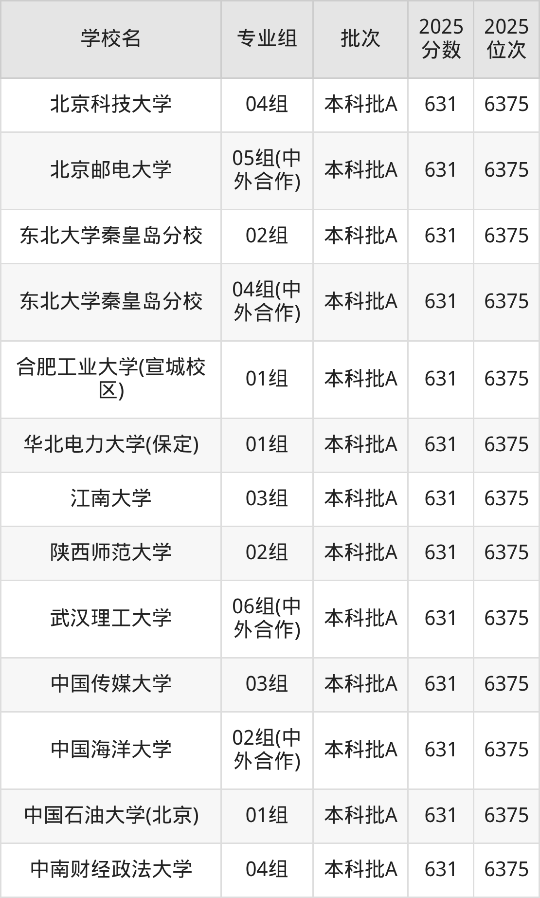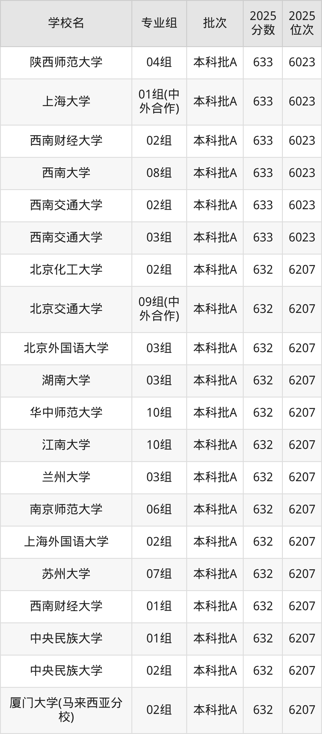 二、633分左右的本科大学排名