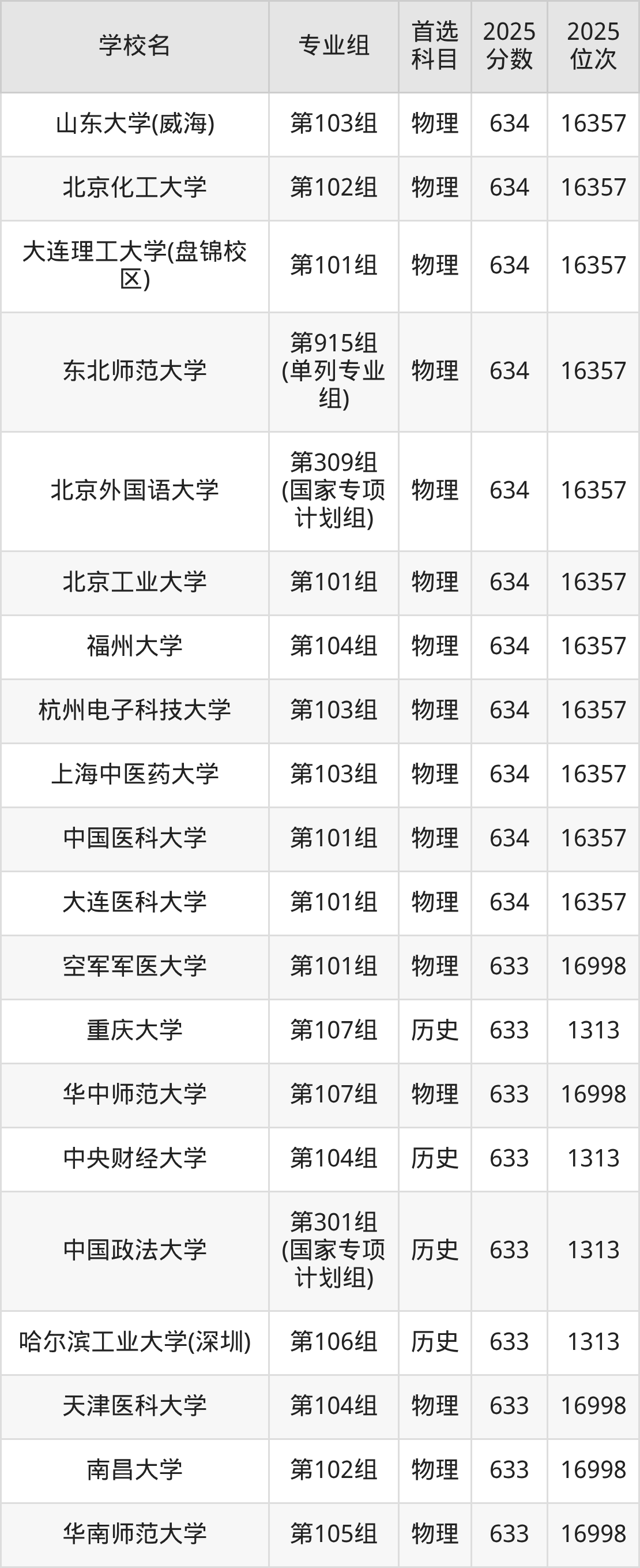 河南高考物理类633分对应的位次排名是16998名,历史类633分对应的位次排名是1313名,因此建议2026年位次排在这附近的同学考虑这些大学。
