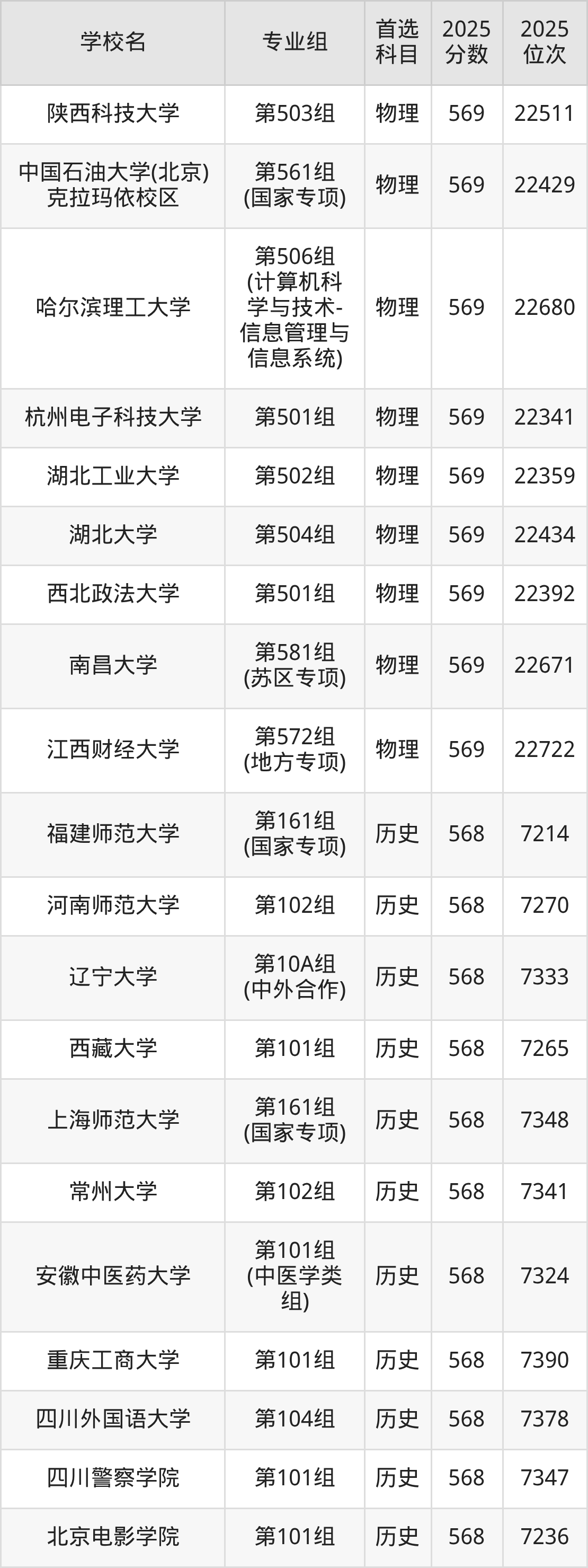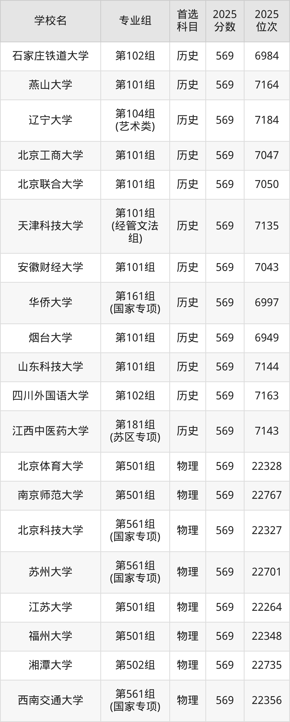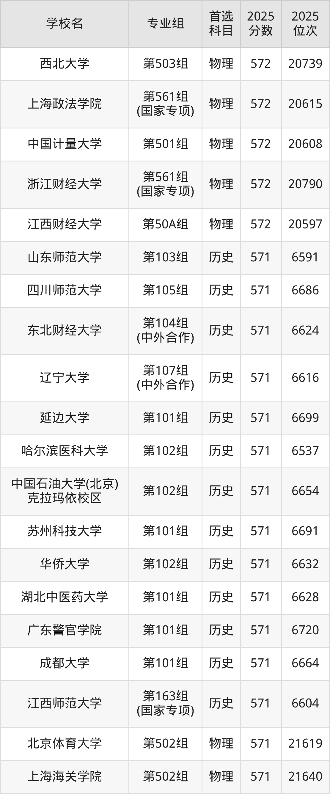 2025年在江西高考历史类录取分数线是570分的大学有天津师范大学、东北财经大学、辽宁大学、石河子大学、天津外国语大学、山东财经大学、湖南科技大学、西华大学、云南中医药大学、西安外国语大学等。物理类录取分数线是570分的大学有大连海事大学、南京师范大学、西南大学、北京林业大学、北京中医药大学、北京语言大学、中国传媒大学、太原理工大学、辽宁大学、长春理工大学等。