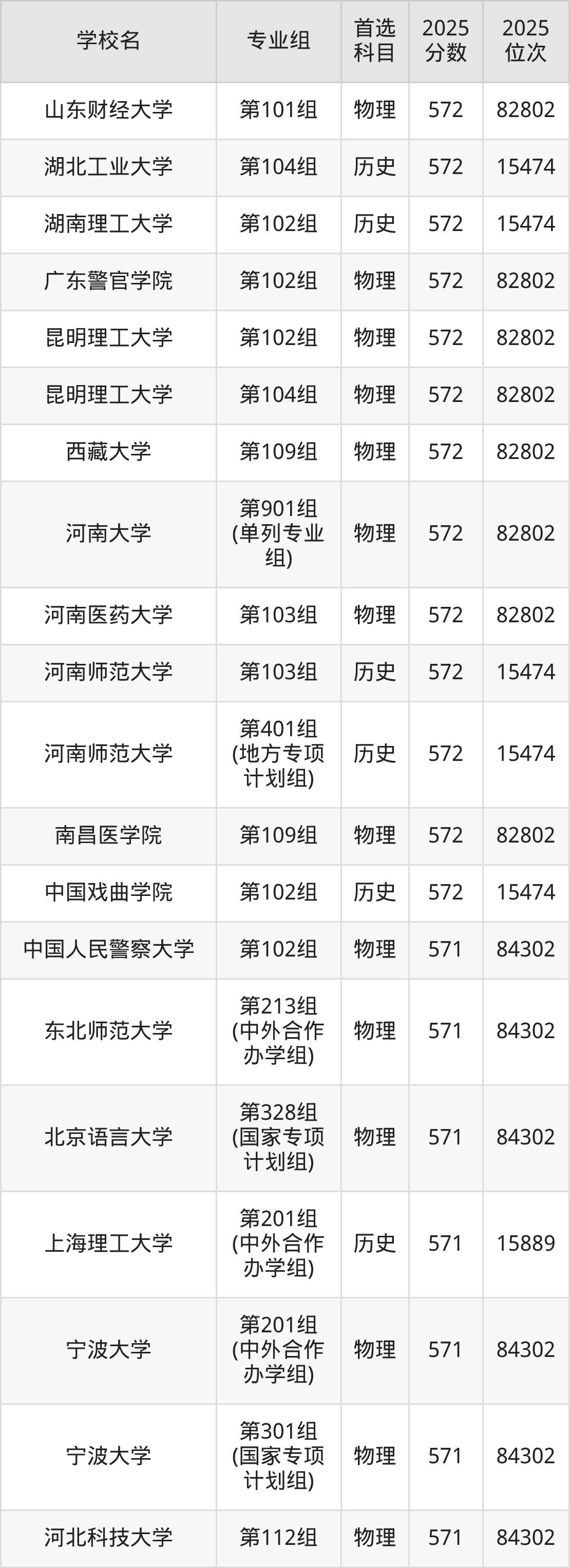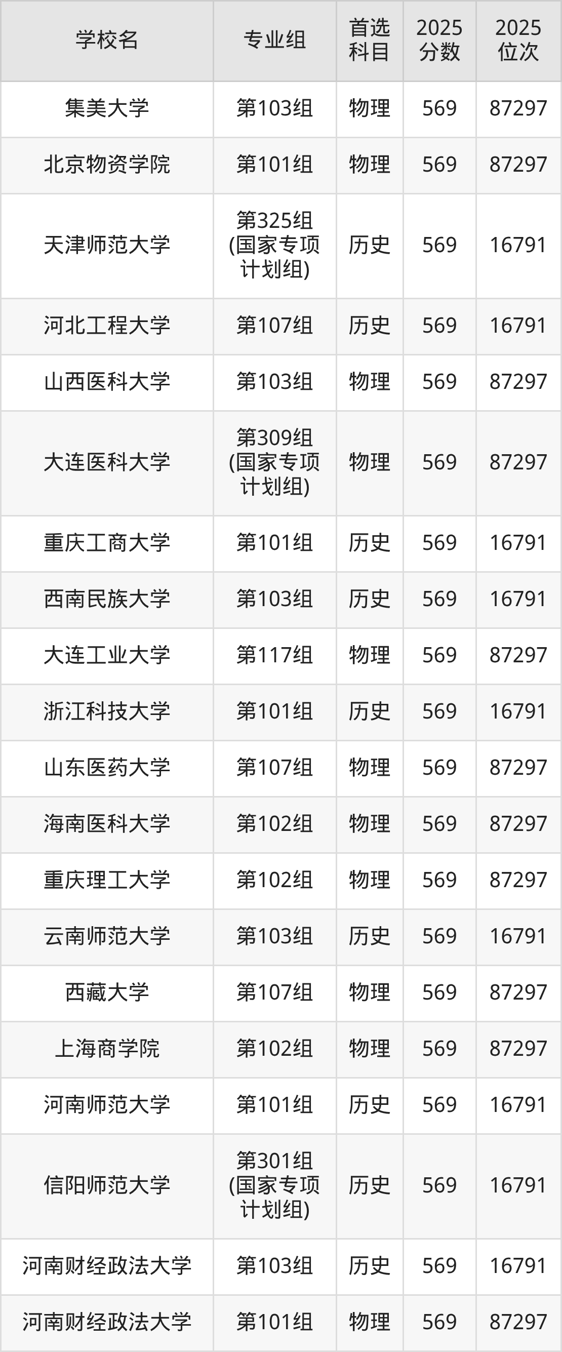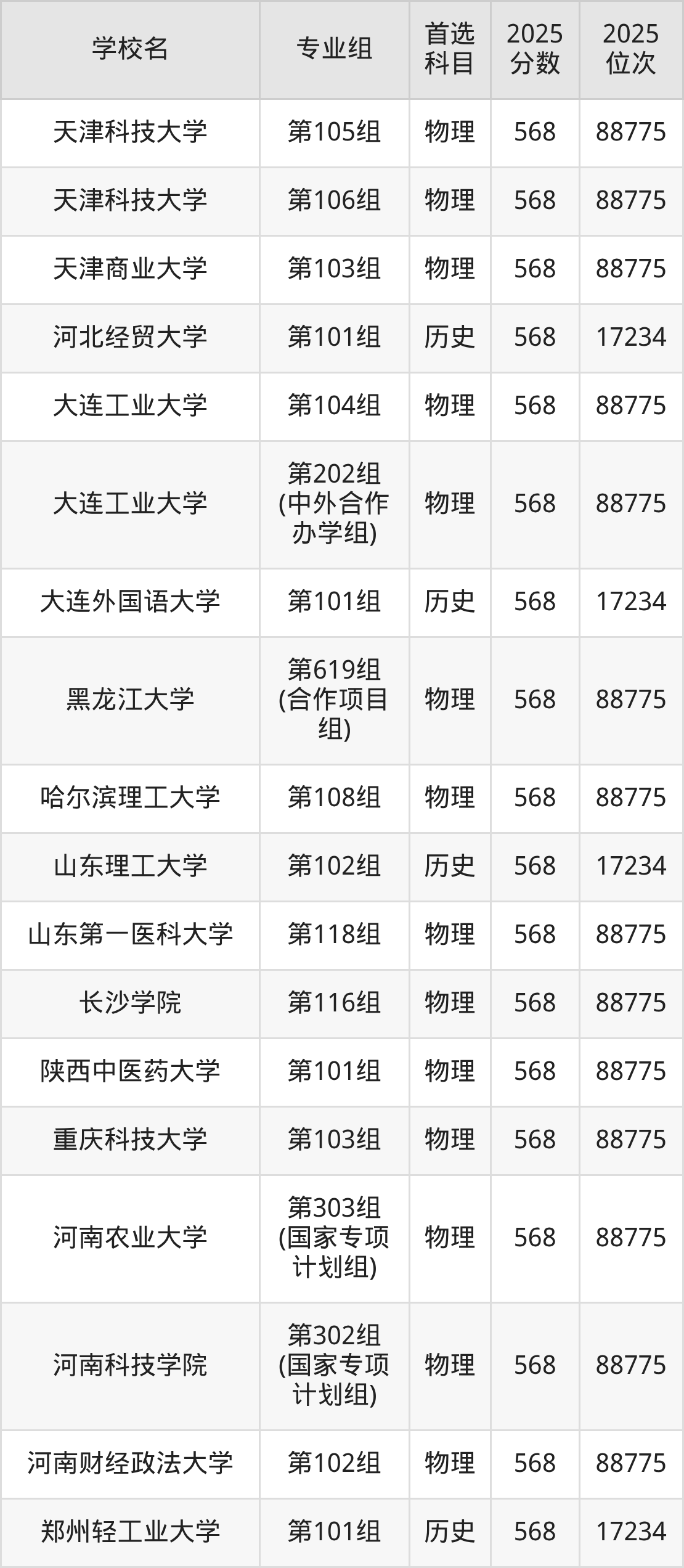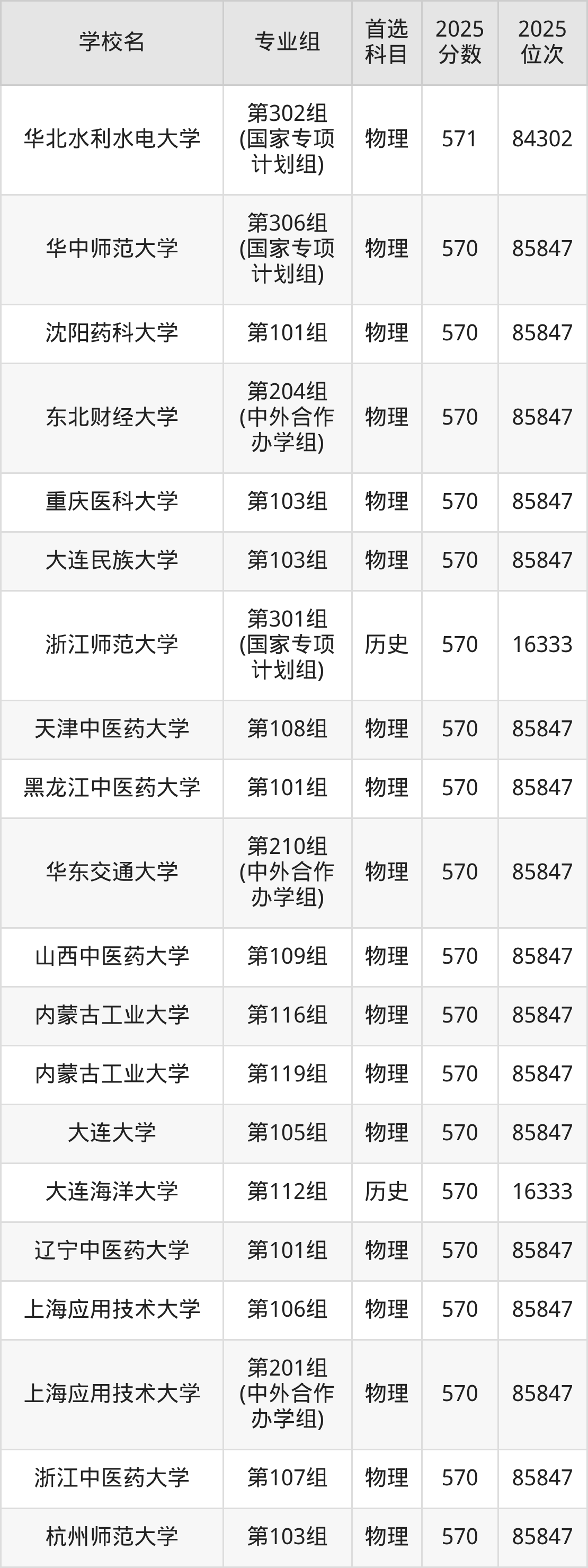 2025年在河南高考物理类录取分数线是570分的大学有华中师范大学、沈阳药科大学、东北财经大学、重庆医科大学、大连民族大学、天津中医药大学、黑龙江中医药大学、华东交通大学、山西中医药大学、内蒙古工业大学等。历史类录取分数线是570分的大学有浙江师范大学、大连海洋大学、五邑大学、甘肃政法大学、洛阳师范学院。