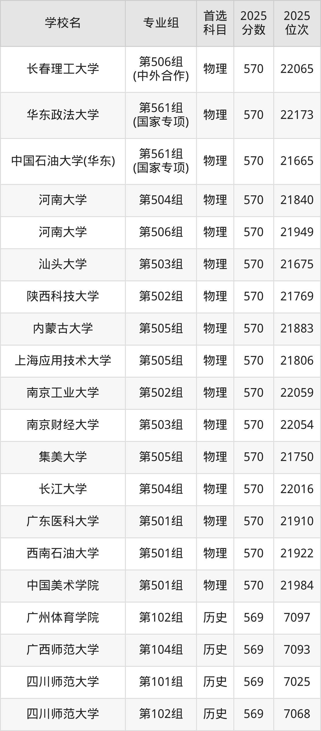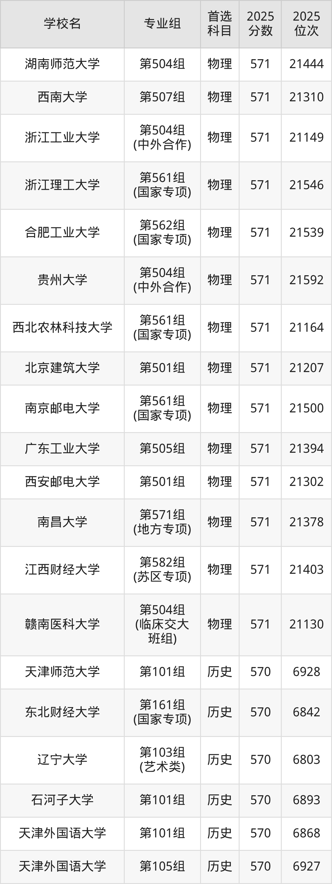 江西高考物理类570分对应的位次排名是21665名-22173名,历史类570分对应的位次排名是6733名-6938名,因此建议2026年位次排在这附近的同学考虑这些大学。