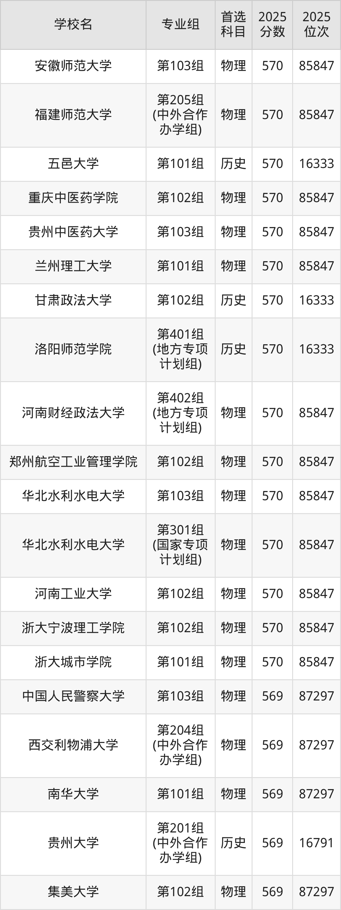 河南高考物理类570分对应的位次排名是85847名,历史类570分对应的位次排名是16333名,因此建议2026年位次排在这附近的同学考虑这些大学。