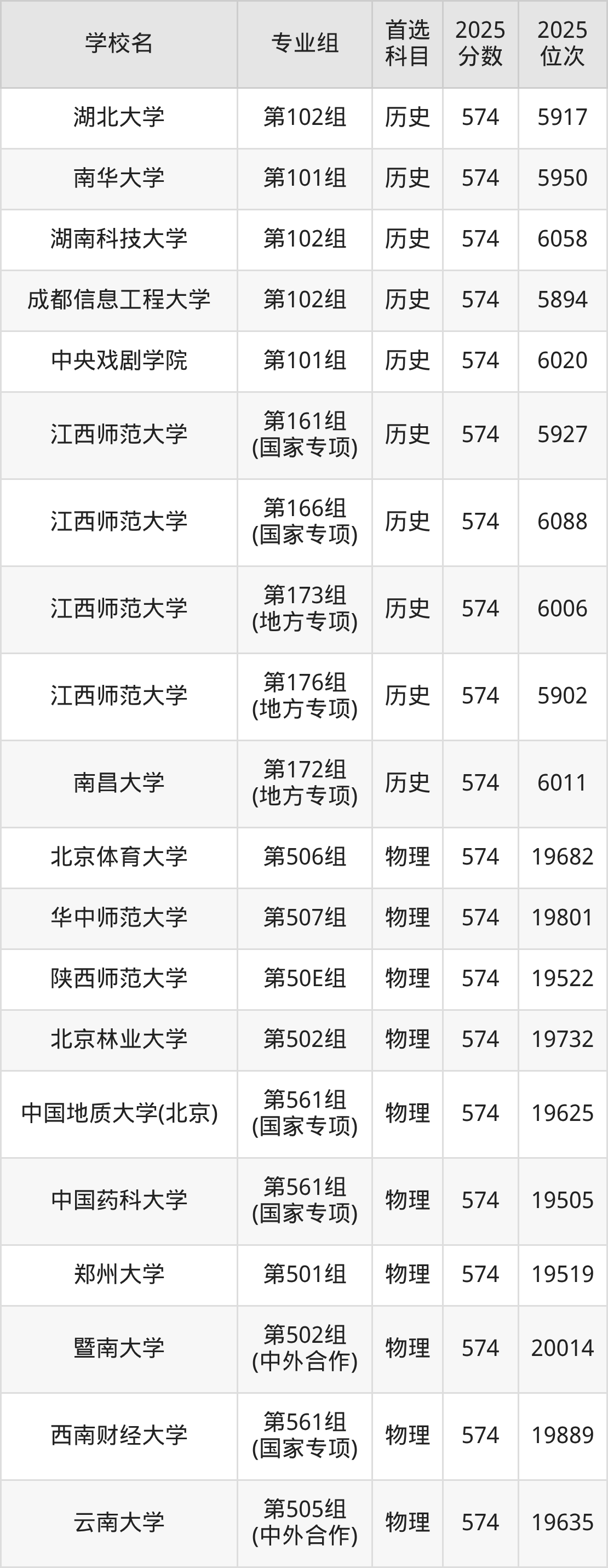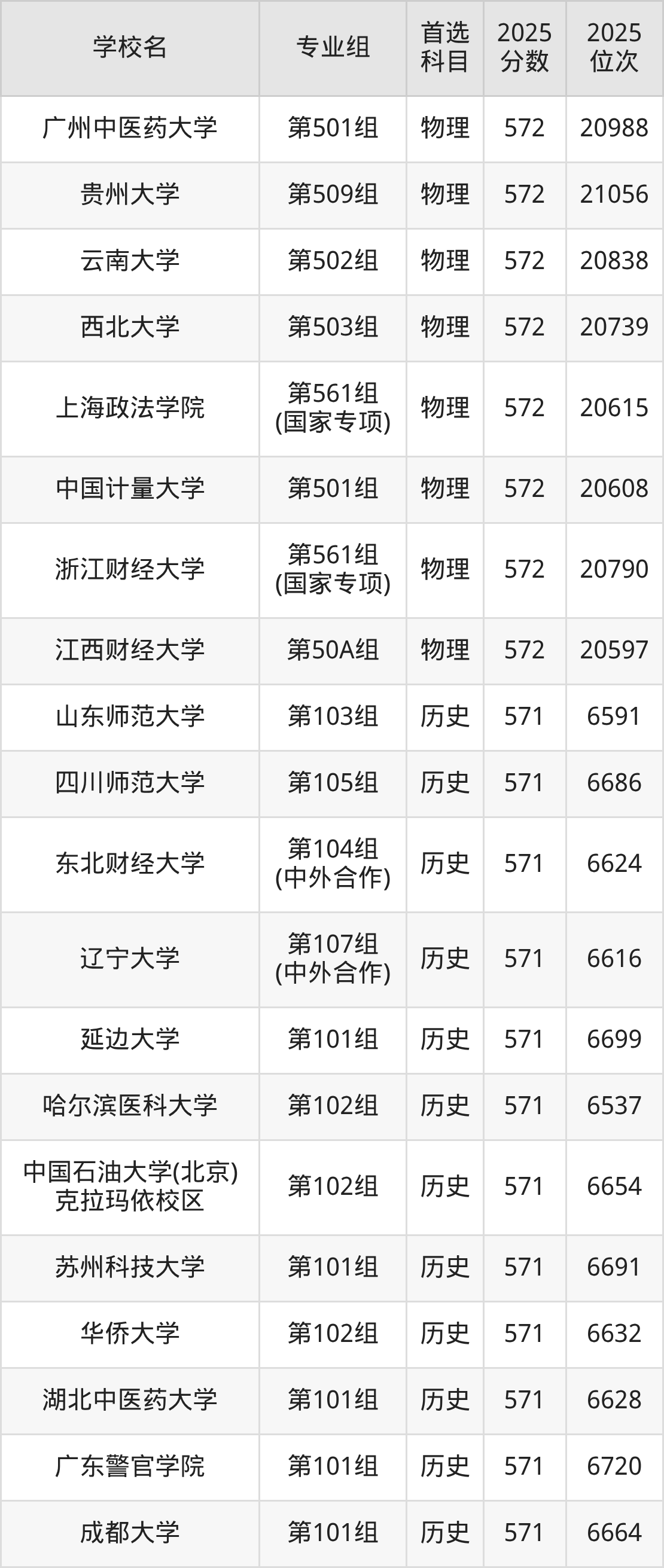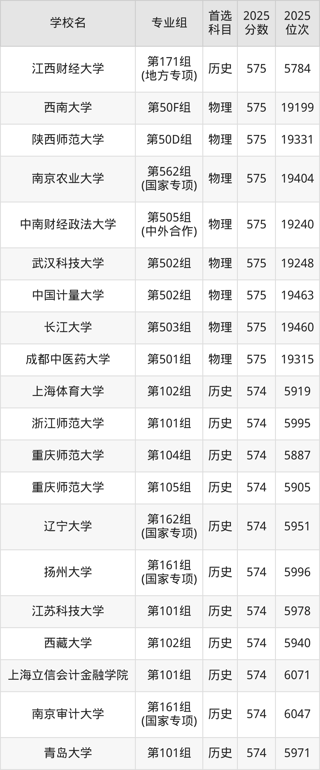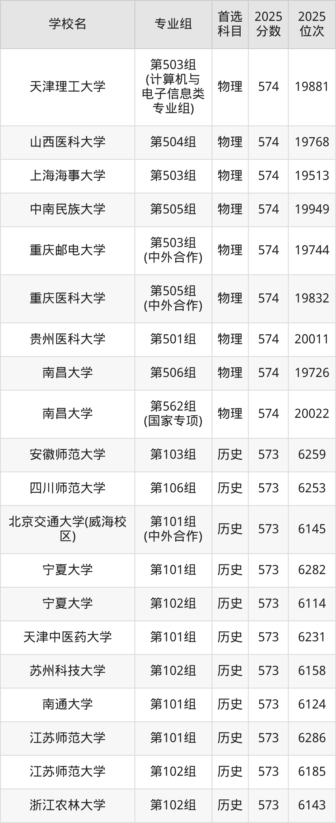 江西高考历史类573分对应的位次排名是6114名-6291名,物理类573分对应的位次排名是20030名-20564名,因此建议2026年位次排在这附近的同学考虑这些大学。