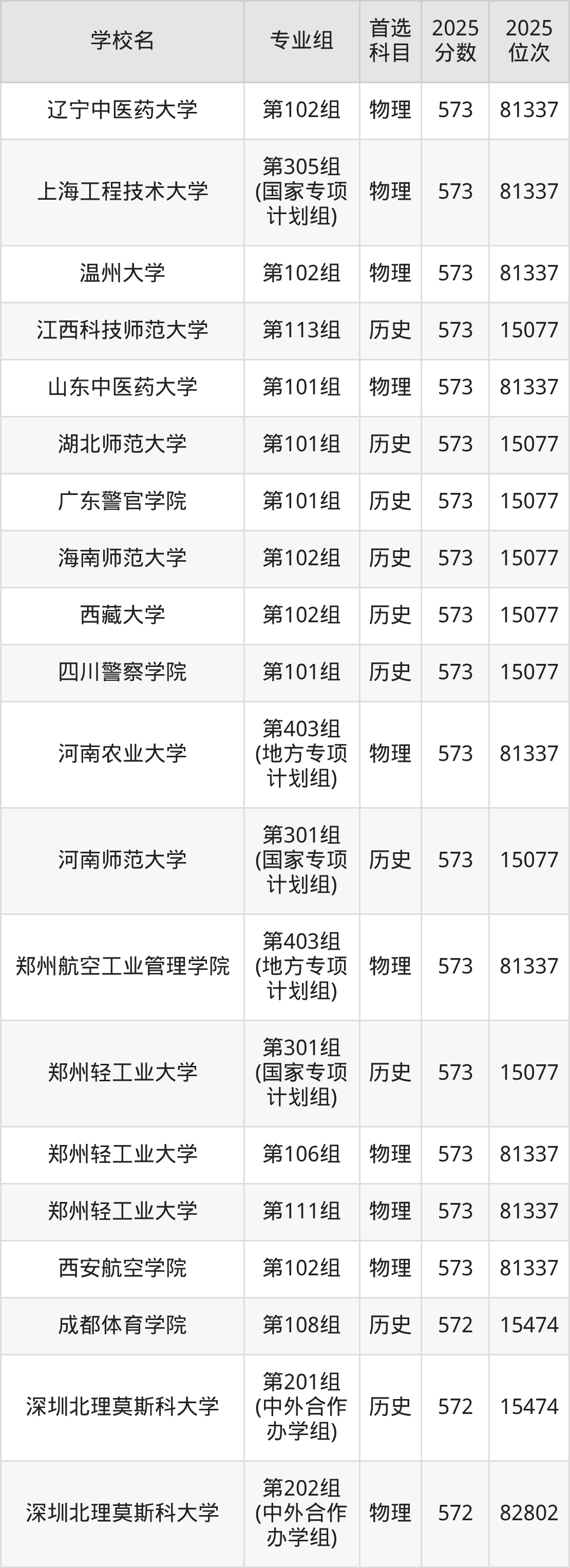 河南高考物理类573分对应的位次排名是81337名,历史类573分对应的位次排名是15077名,因此建议2026年位次排在这附近的同学考虑这些大学。