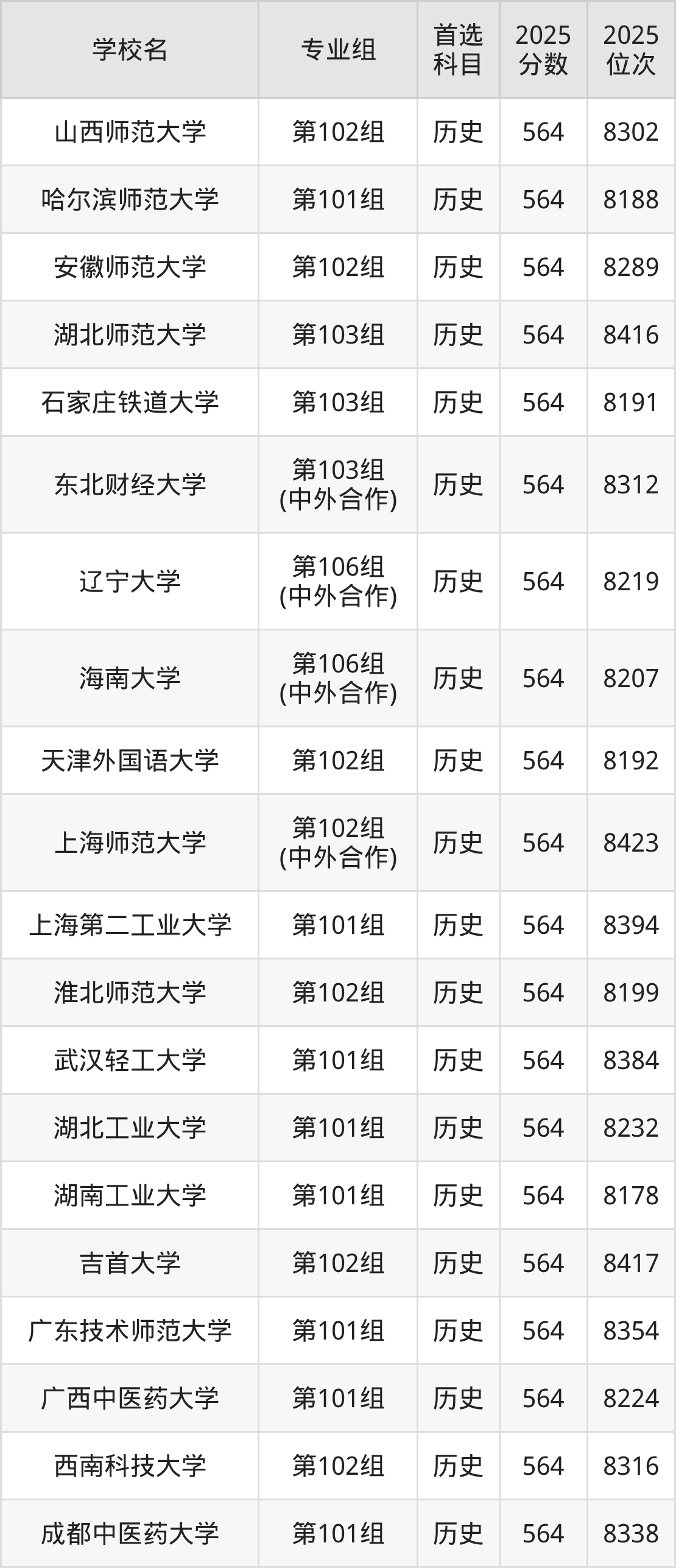 历史类562分可以冲的大学:山西师范大学564分、哈尔滨师范大学564分、安徽师范大学564分、湖北师范大学564分等;较稳妥的大学:成都体育学院561分、云南师范大学561分、天津外国语大学561分、中北大学561分等。