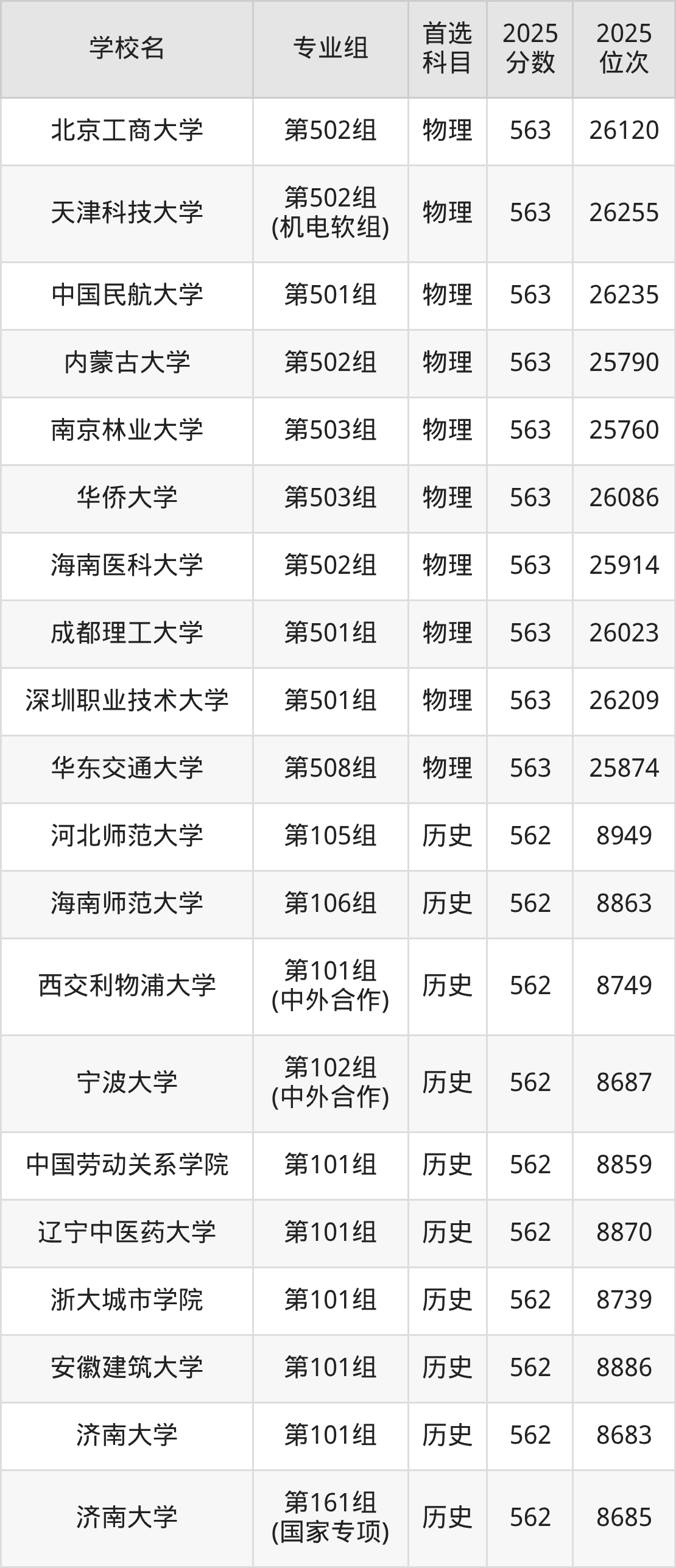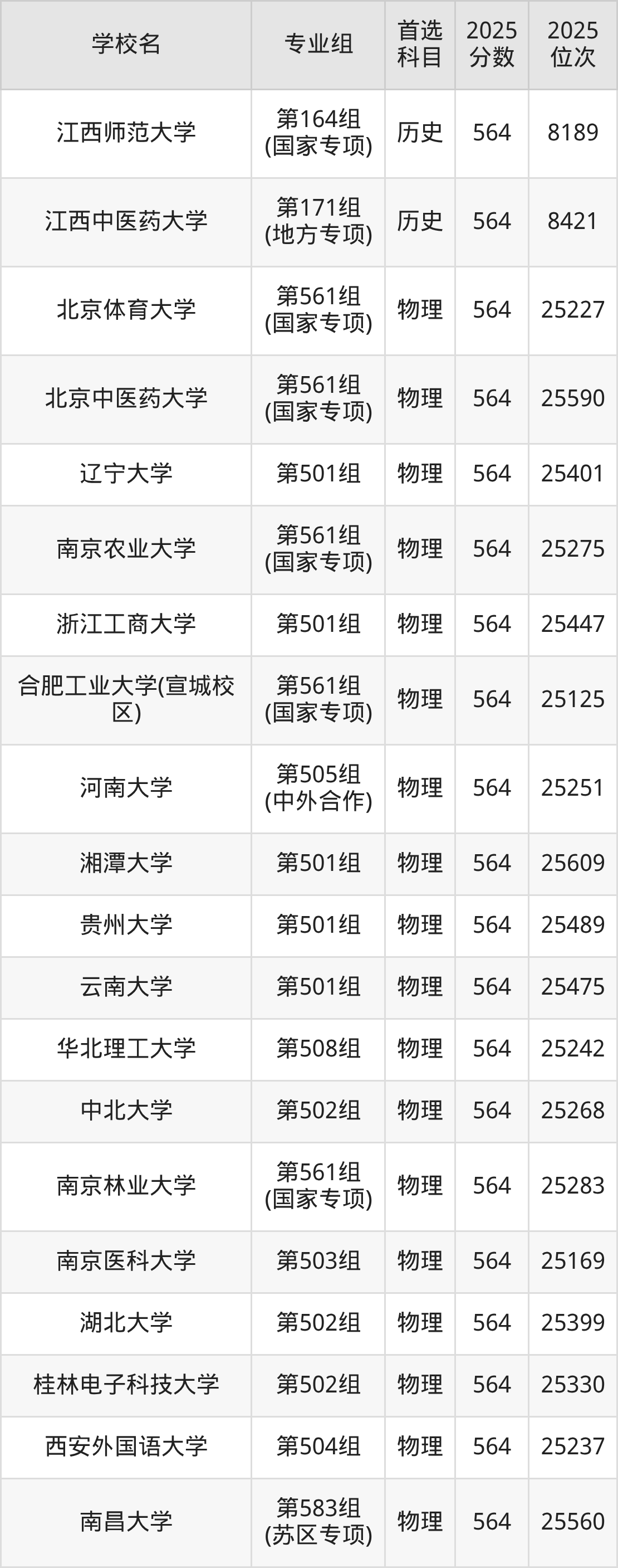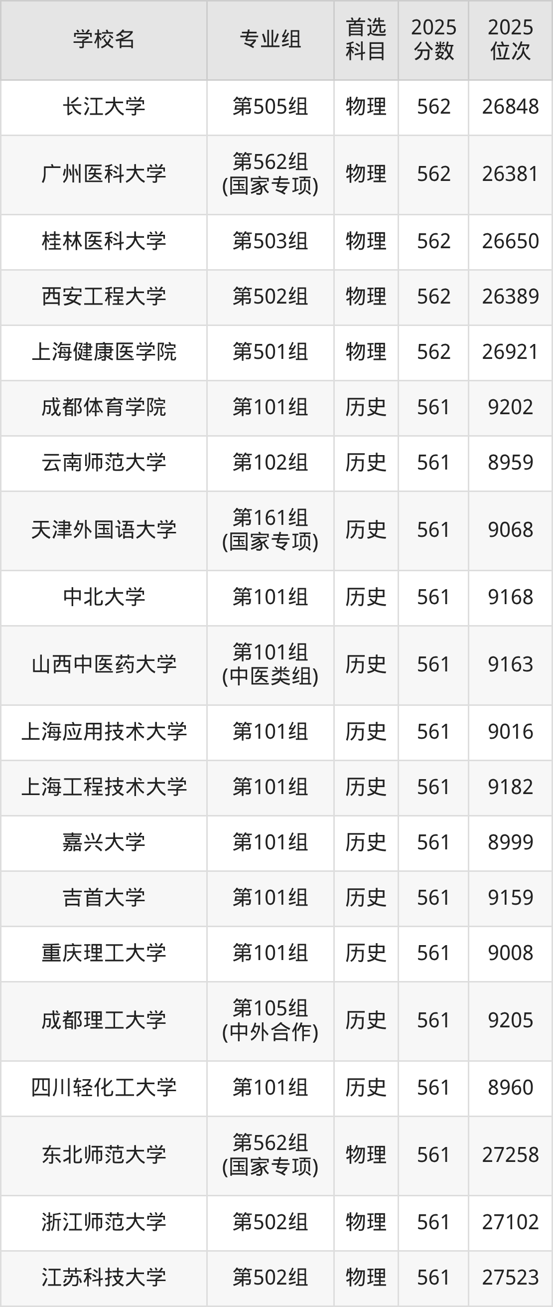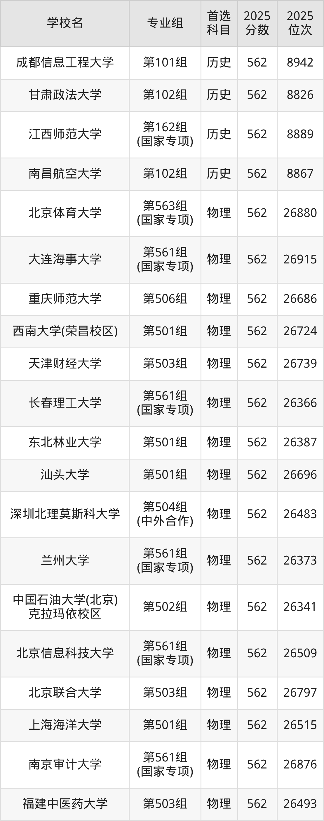 江西高考历史类562分对应的位次排名是8683名-8949名,物理类562分对应的位次排名是26341名-26921名,因此建议2026年位次排在这附近的同学考虑这些大学。