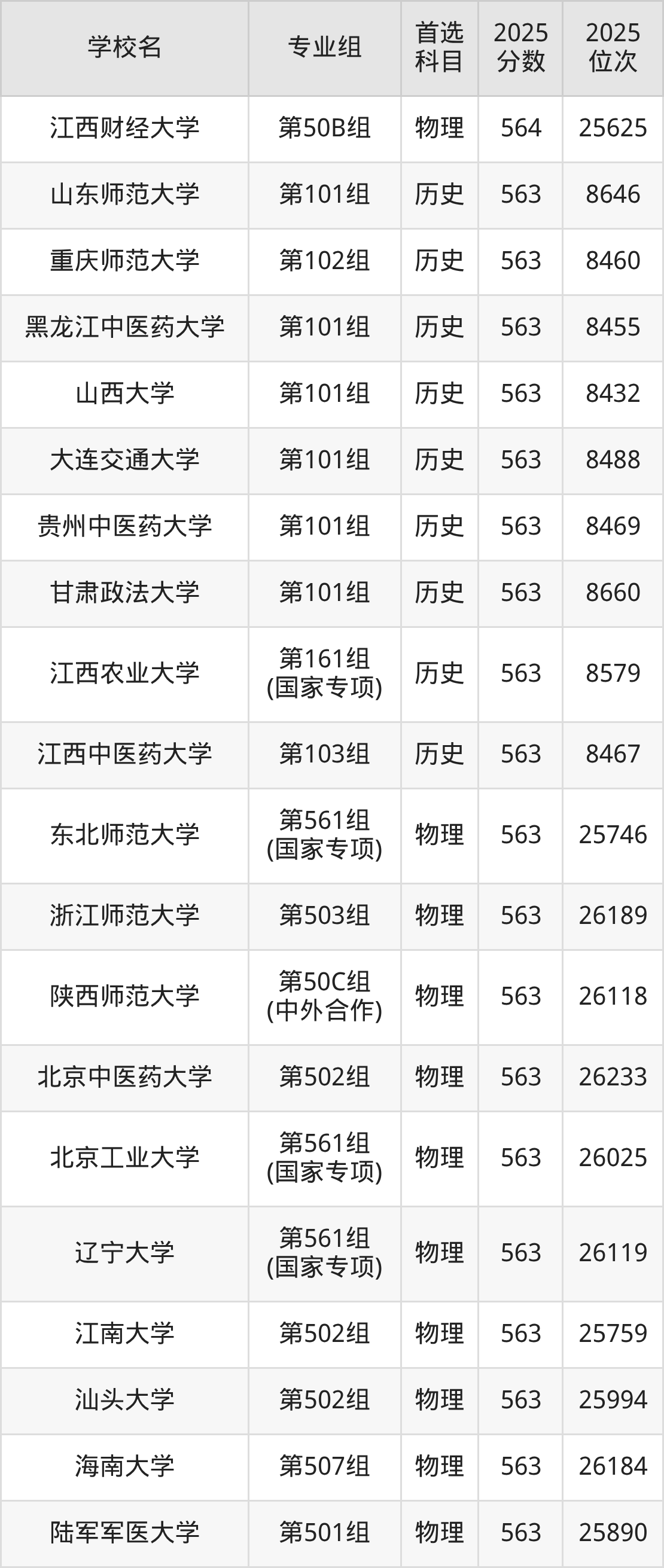 2025年在江西高考历史类录取分数线是562分的大学有河北师范大学、海南师范大学、西交利物浦大学、宁波大学、中国劳动关系学院、辽宁中医药大学、浙大城市学院、安徽建筑大学、济南大学、成都信息工程大学等。物理类录取分数线是562分的大学有北京体育大学、大连海事大学、重庆师范大学、西南大学(荣昌校区)、天津财经大学、长春理工大学、东北林业大学、汕头大学、深圳北理莫斯科大学、兰州大学等。
