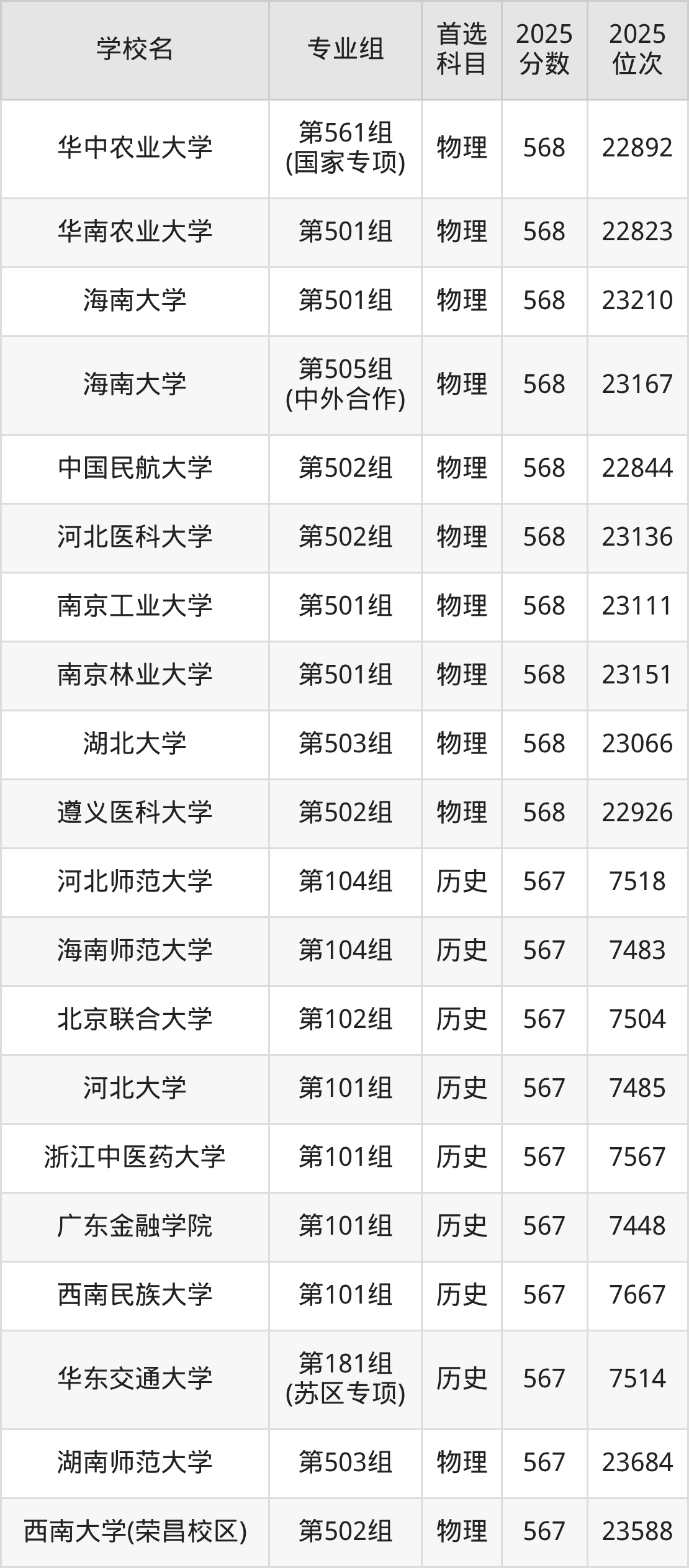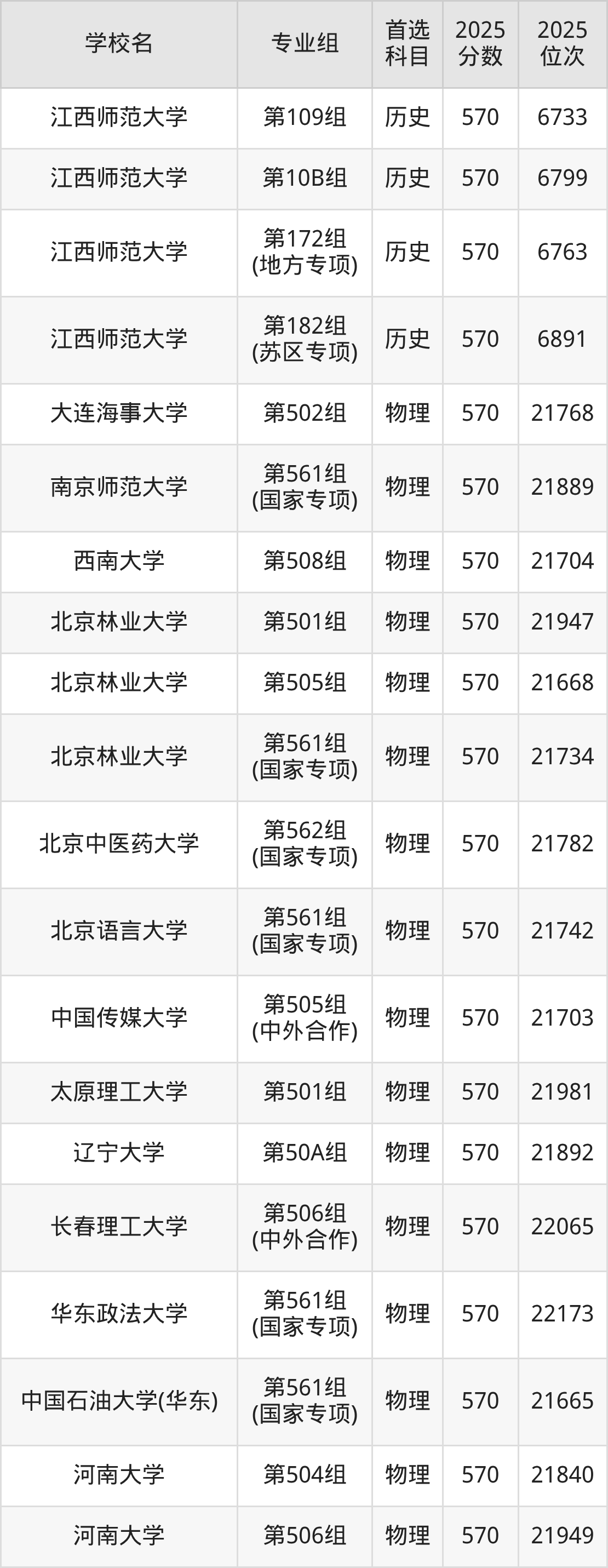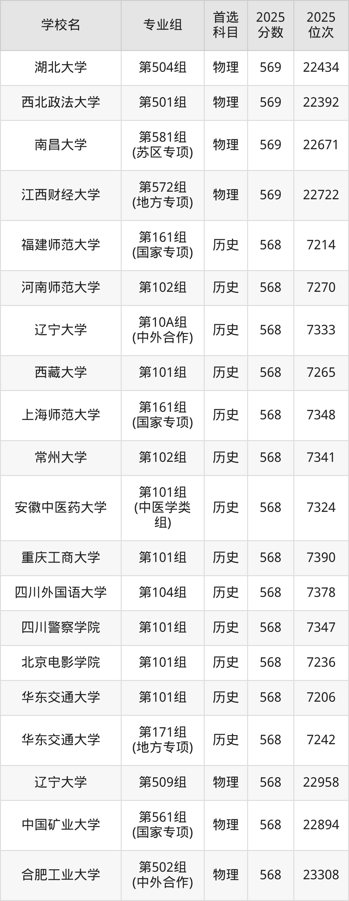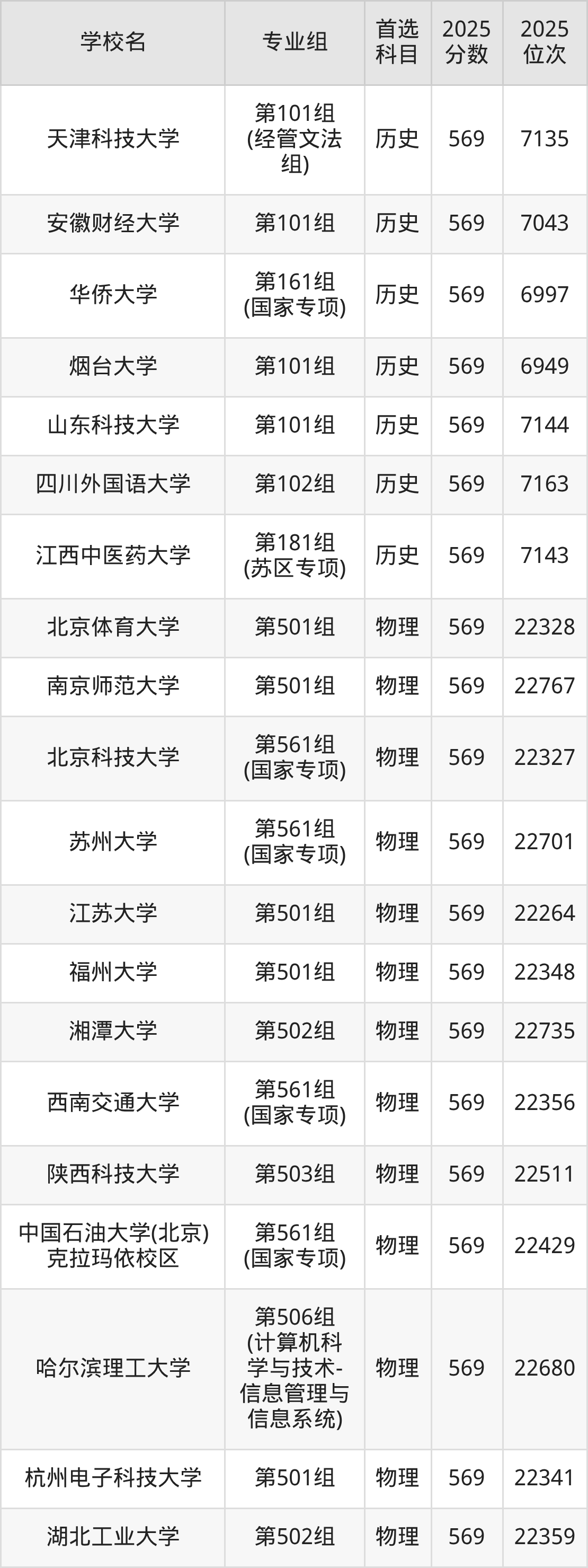 江西高考历史类569分对应的位次排名是6949名-7184名,物理类569分对应的位次排名是22264名-22767名,因此建议2026年位次排在这附近的同学考虑这些大学。