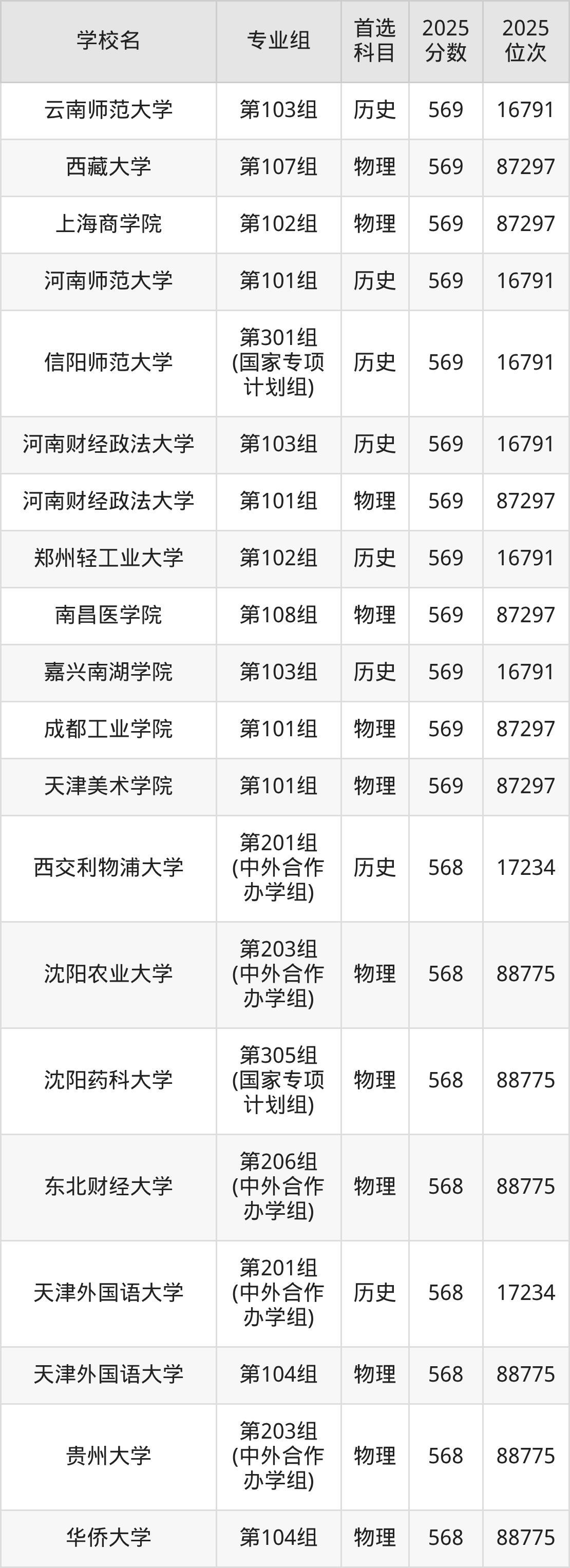 河南高考物理类569分对应的位次排名是87297名,历史类569分对应的位次排名是16791名,因此建议2026年位次排在这附近的同学考虑这些大学。