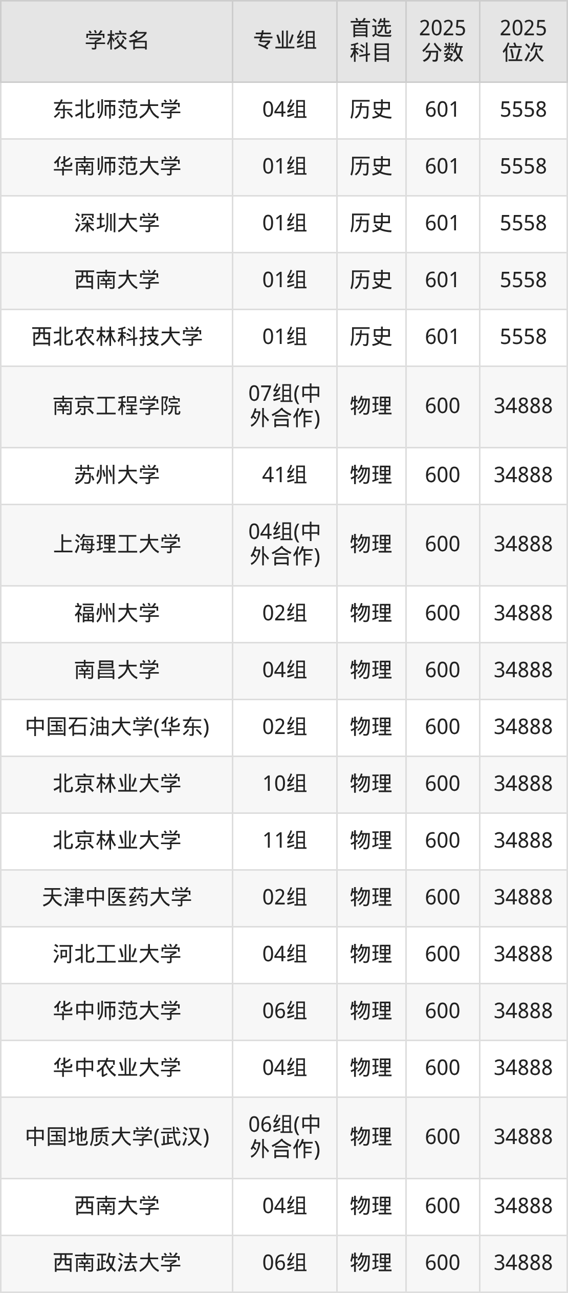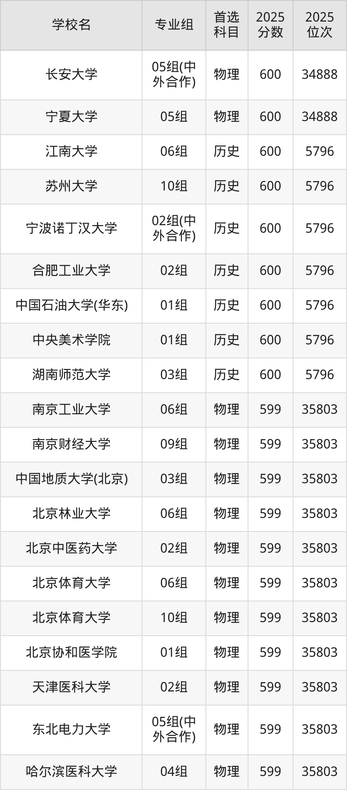 江苏高考物理类600分对应的位次排名是34888名,历史类600分对应的位次排名是5796名,因此建议2026年位次排在这附近的同学考虑这些大学。