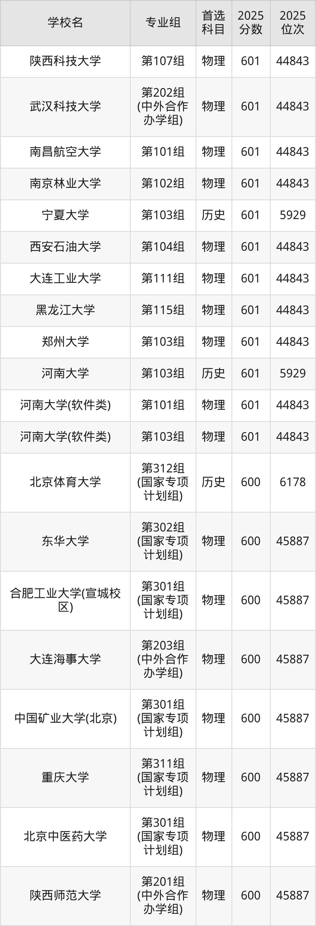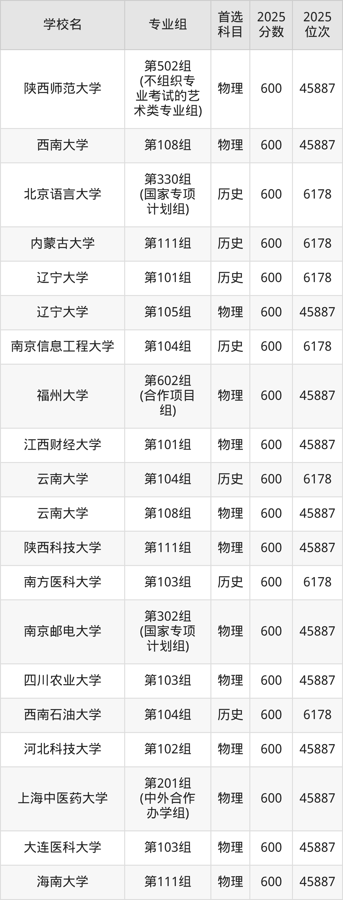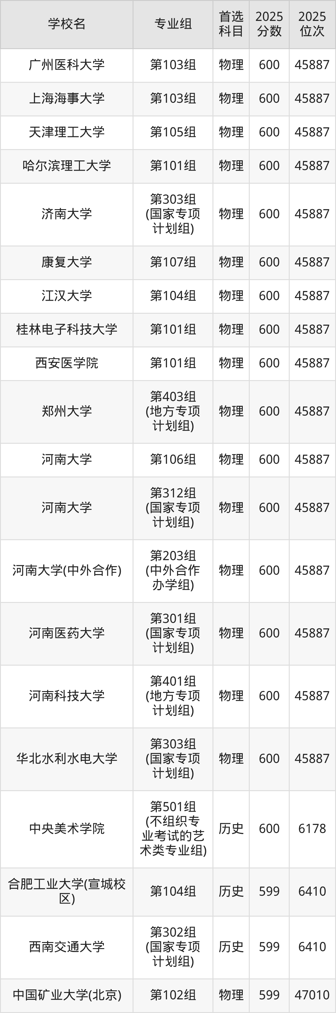 河南高考历史类600分对应的位次排名是6178名,物理类600分对应的位次排名是45887名,因此建议2026年位次排在这附近的同学考虑这些大学。