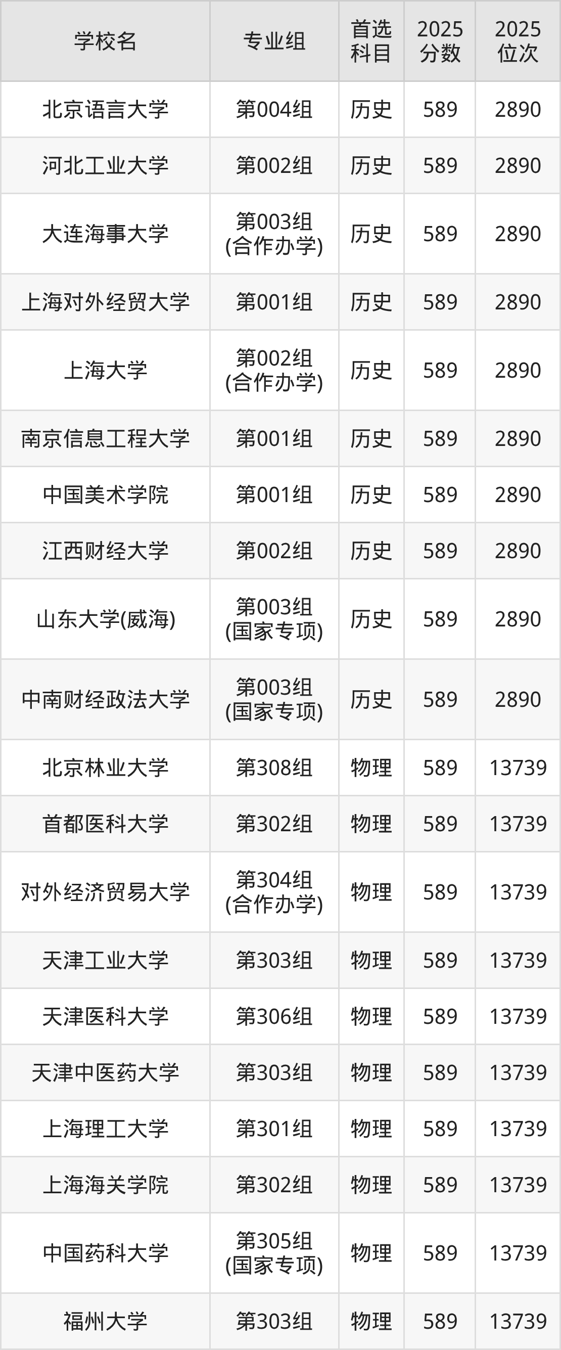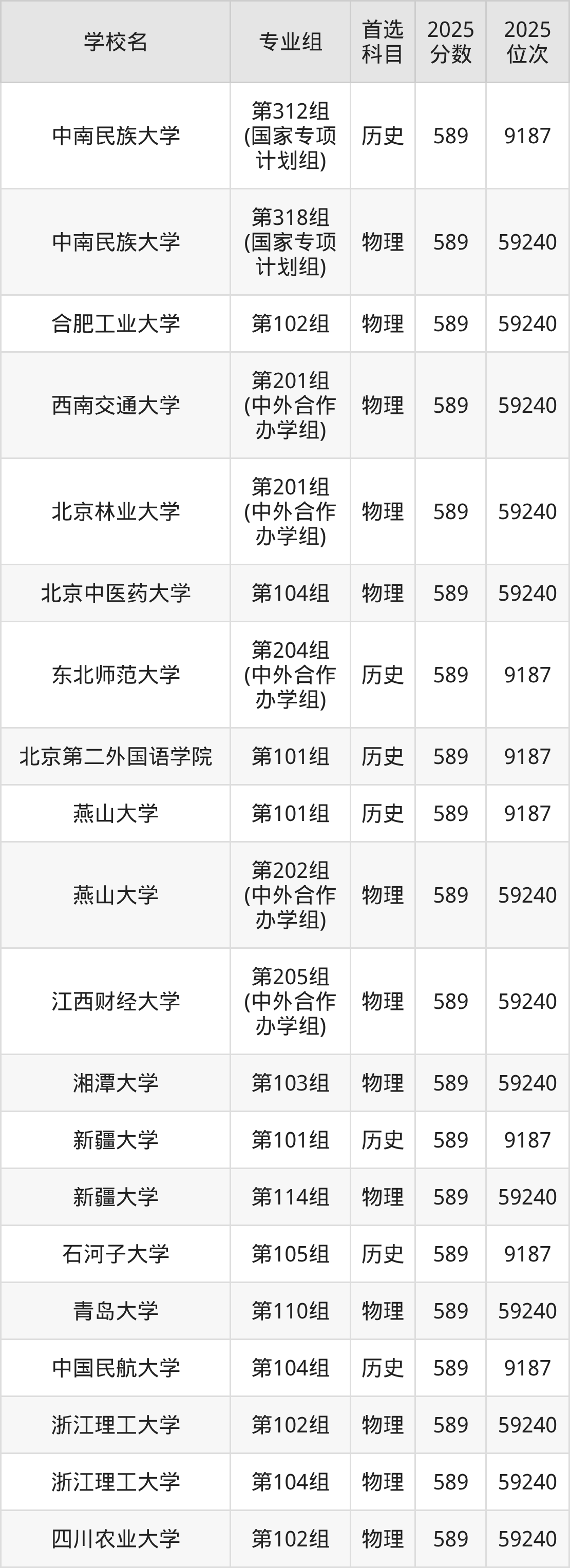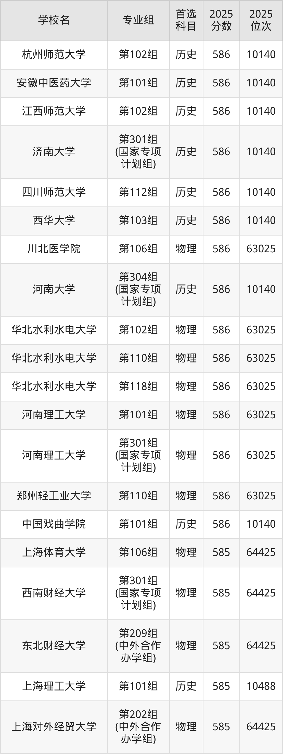 2025年在河南高考历史类录取分数线是587分的大学有华东理工大学、石家庄铁道大学、山西大学、西安外国语大学、成都理工大学、黑龙江中医药大学、河北大学、上海电力大学、温州大学、浙江工商大学等。物理类录取分数线是587分的大学有华中农业大学、北京语言大学、辽宁大学、上海对外经贸大学、天津财经大学、东北电力大学、安徽财经大学、南昌航空大学、成都理工大学、南京林业大学等。