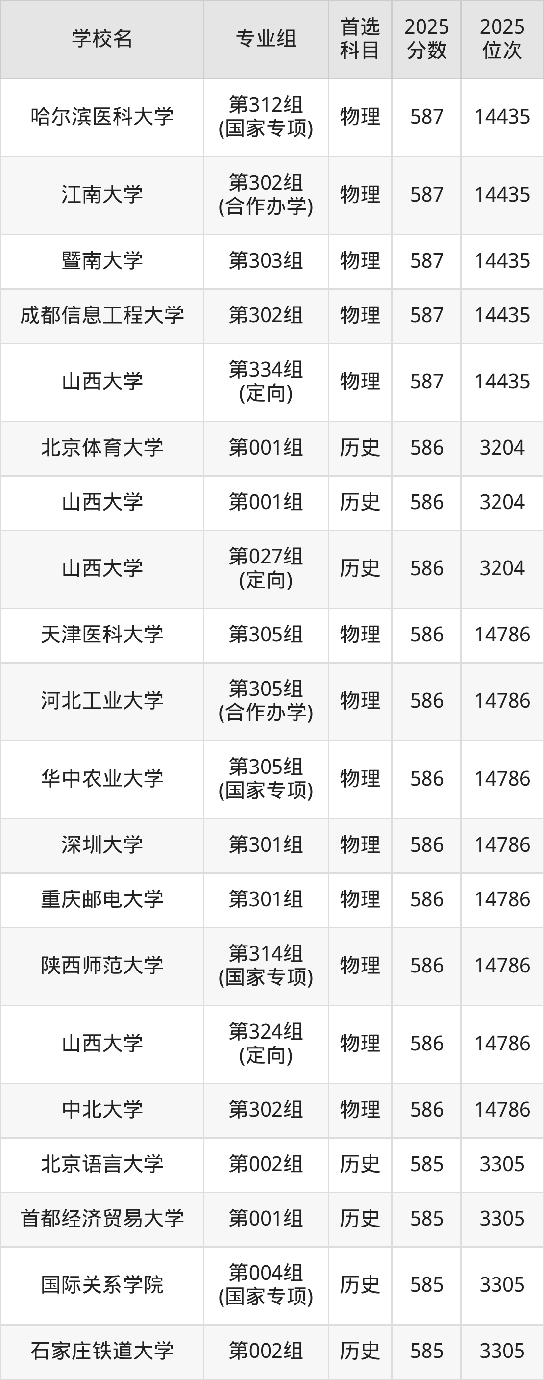 山西高考物理类587分对应的位次排名是14435名,历史类587分对应的位次排名是3093名,因此建议2026年位次排在这附近的同学考虑这些大学。