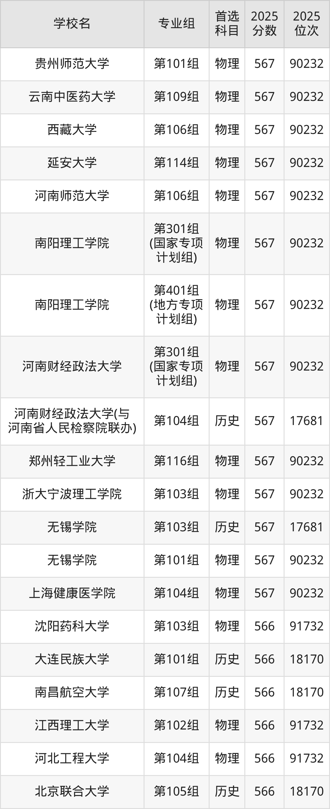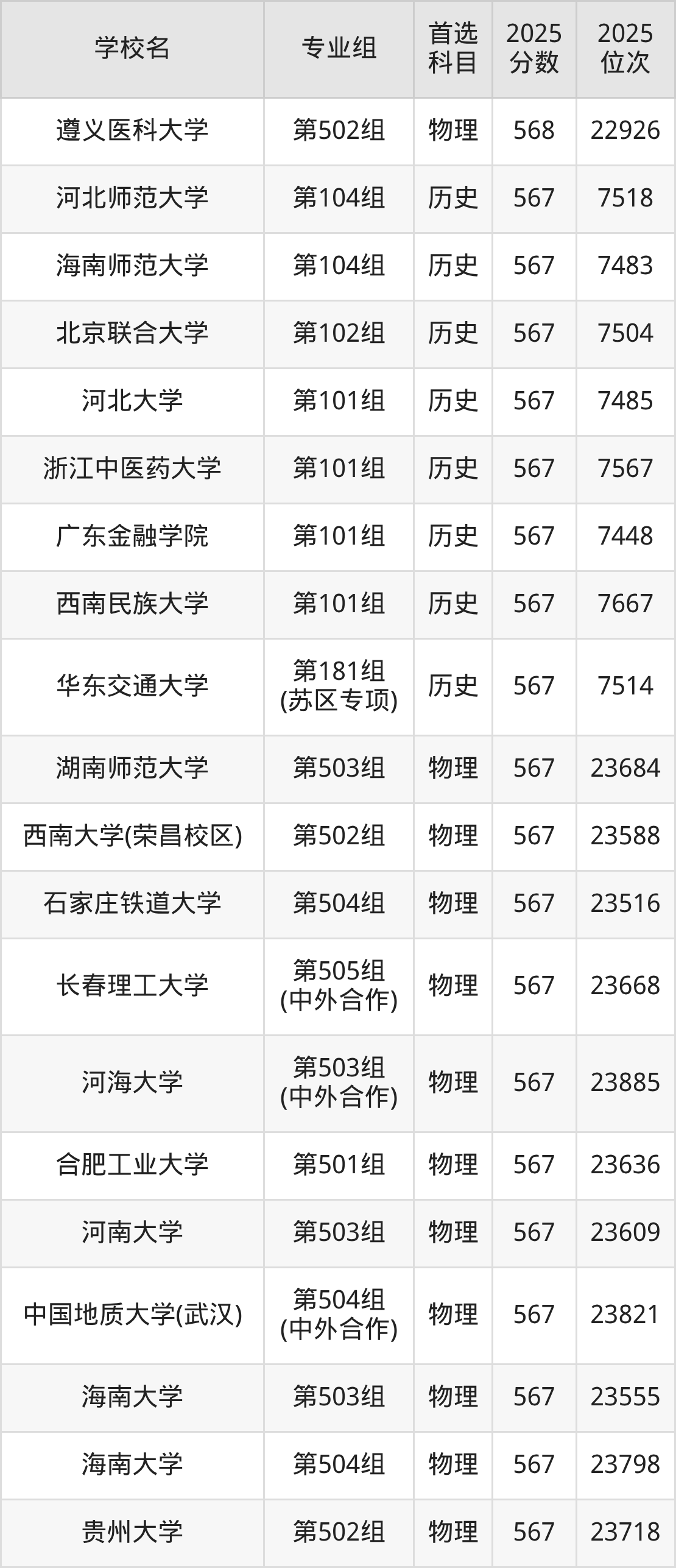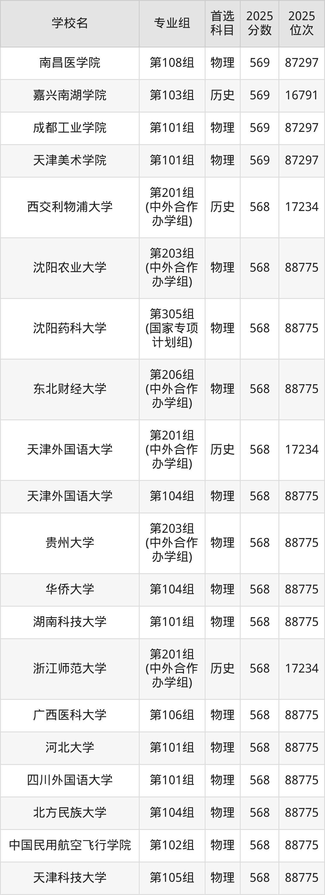 河南高考历史类568分对应的位次排名是17234名,物理类568分对应的位次排名是88775名,因此建议2026年位次排在这附近的同学考虑这些大学。