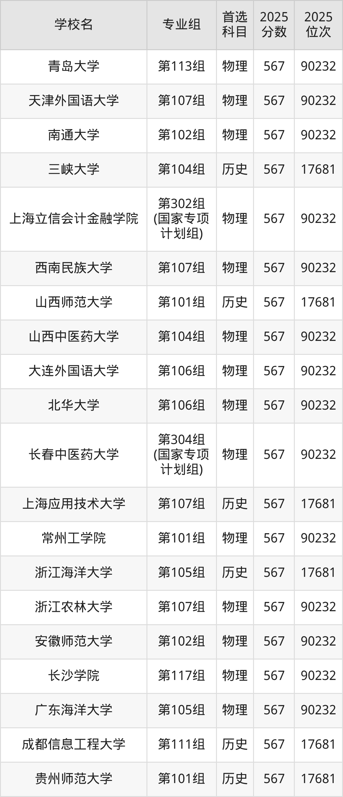 物理类568分可以冲的大学:华中师范大学570分、沈阳药科大学570分、东北财经大学570分、重庆医科大学570分等;较稳妥的大学:中国人民警察大学567分、东北农业大学567分、宁波大学567分、青岛大学567分等。