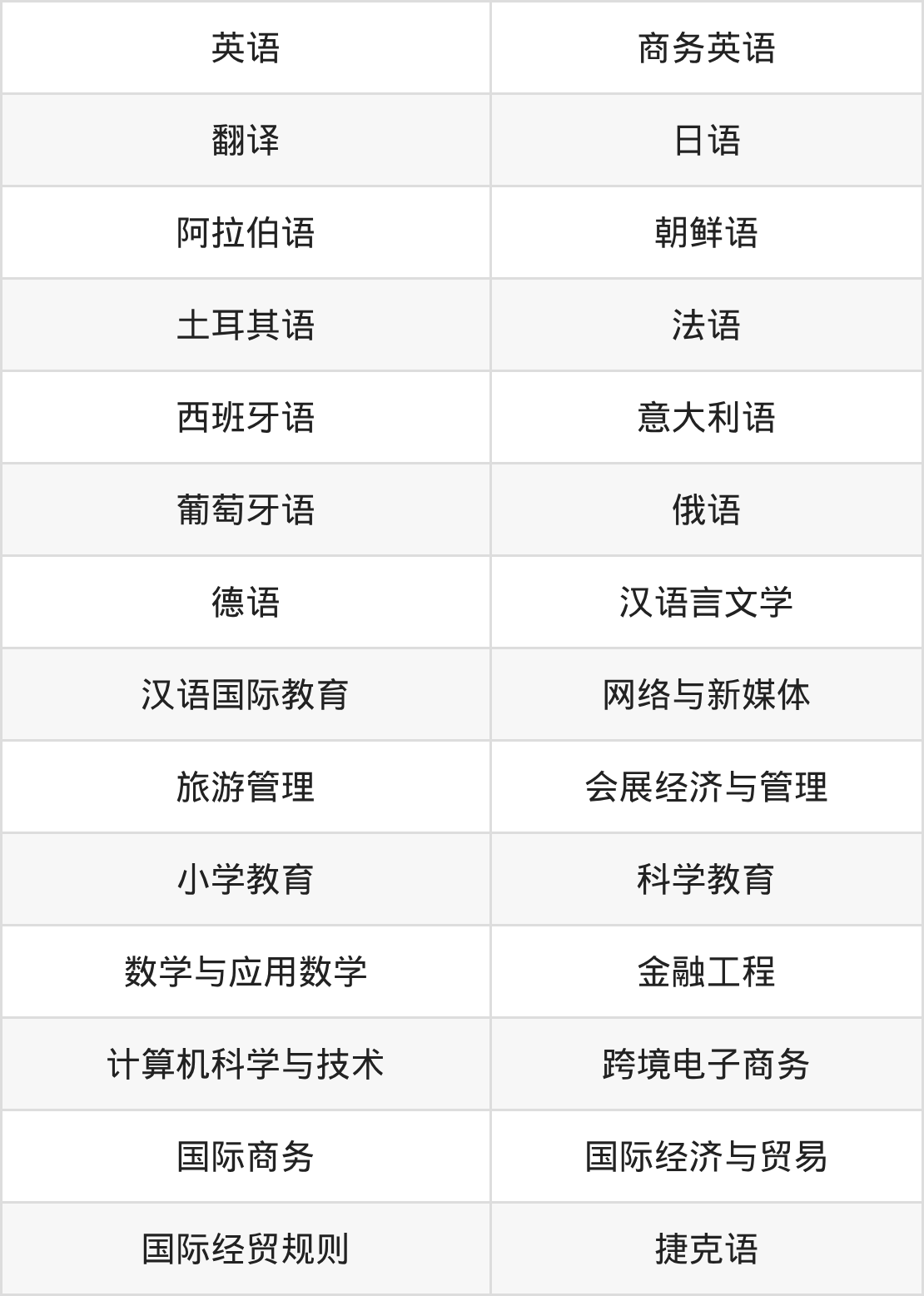 根据2025年浙江高考招生计划可知,浙江外国语学院招生专业包含英语、商务英语、翻译等,完整版名单如下。
