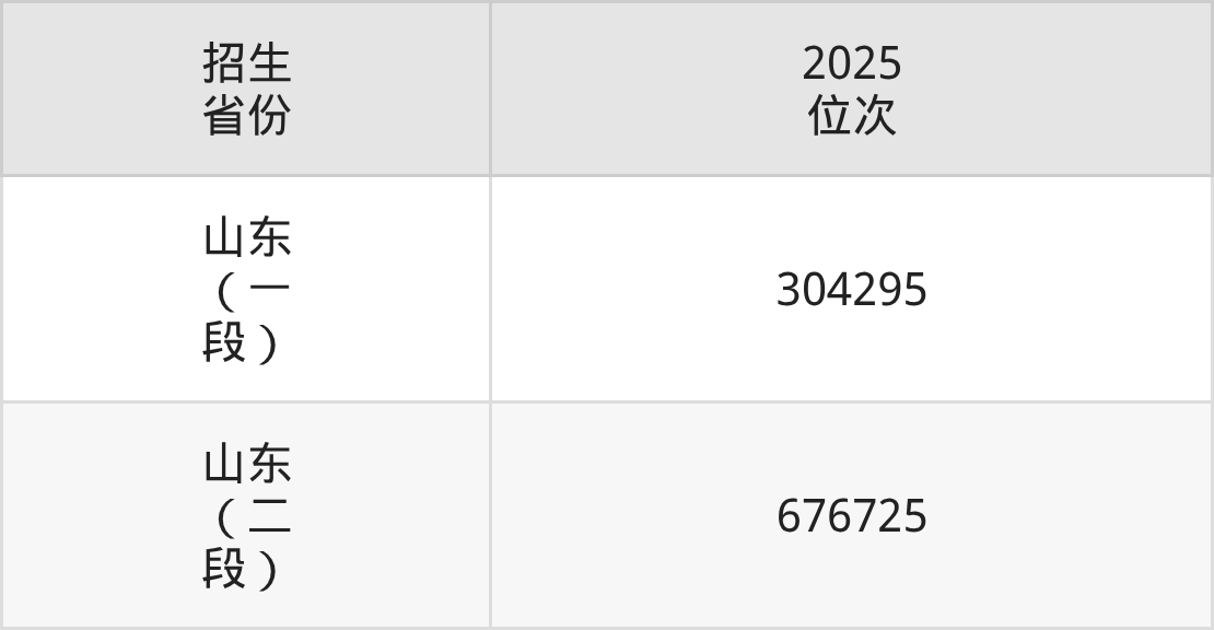 山东财经大学燕山学院2025年的位次差异较大,最高位次是304295位(山东)、最低位次是676725位(山东)。具体位次请看下图: