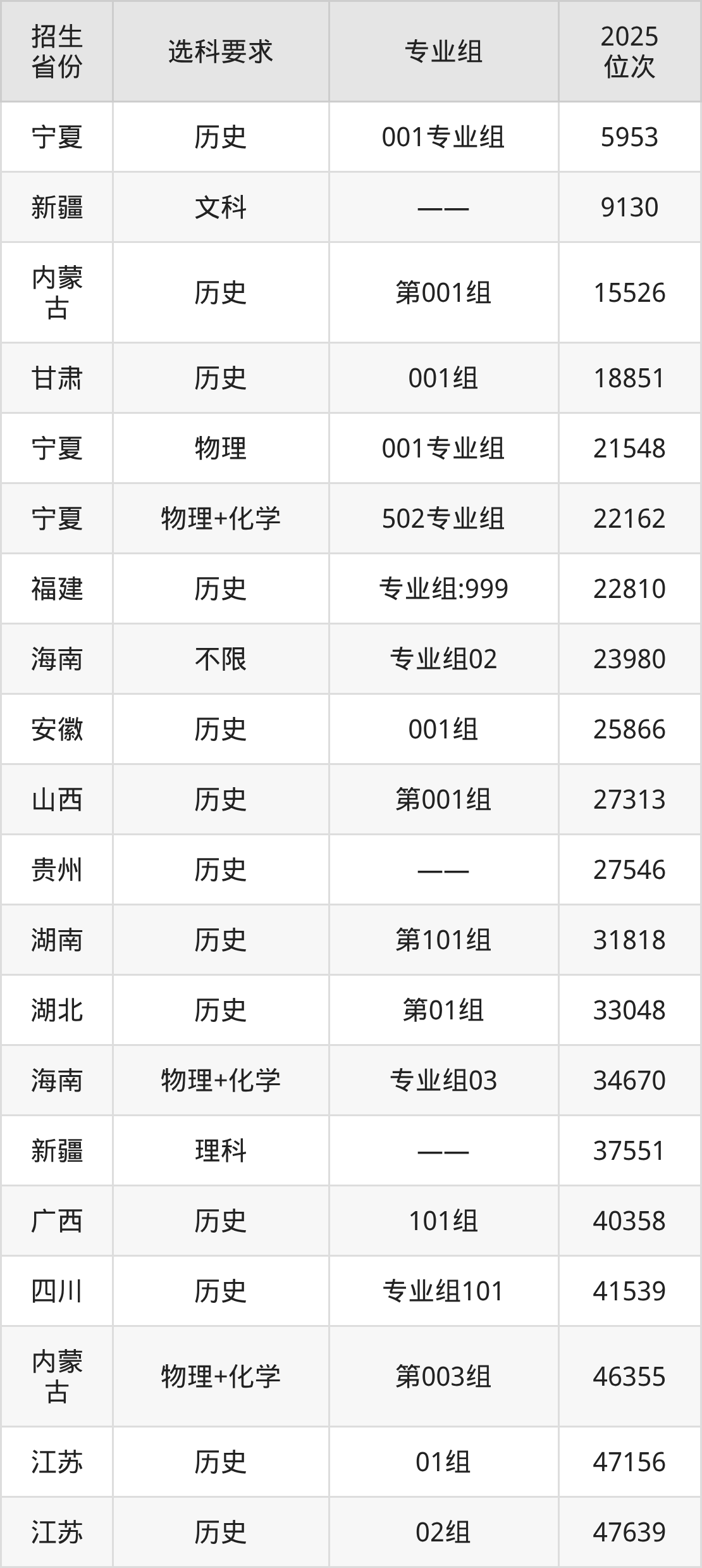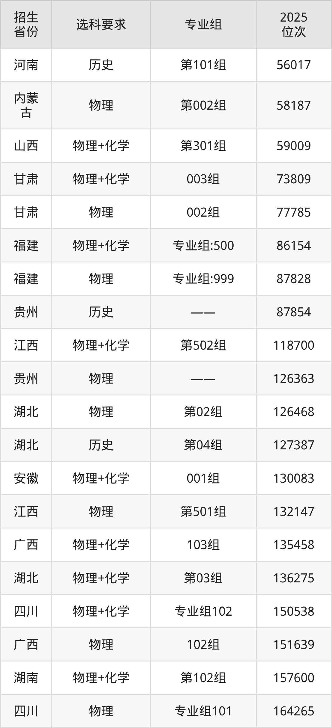 湖北文理学院理工学院2025年在全国各省的位次差异较大,最高位次是5953位(宁夏历史类)、最低位次是287531位(河南物理类)。各省具体位次请看下图: