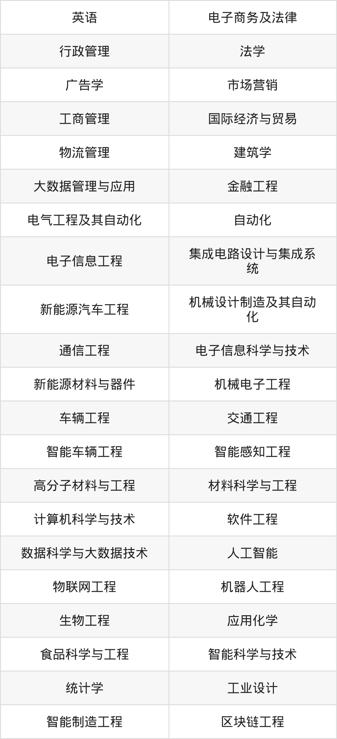 根据2025年安徽高考招生计划可知,安徽工程大学招生专业包含英语、电子商务及法律、行政管理等,完整版名单如下。