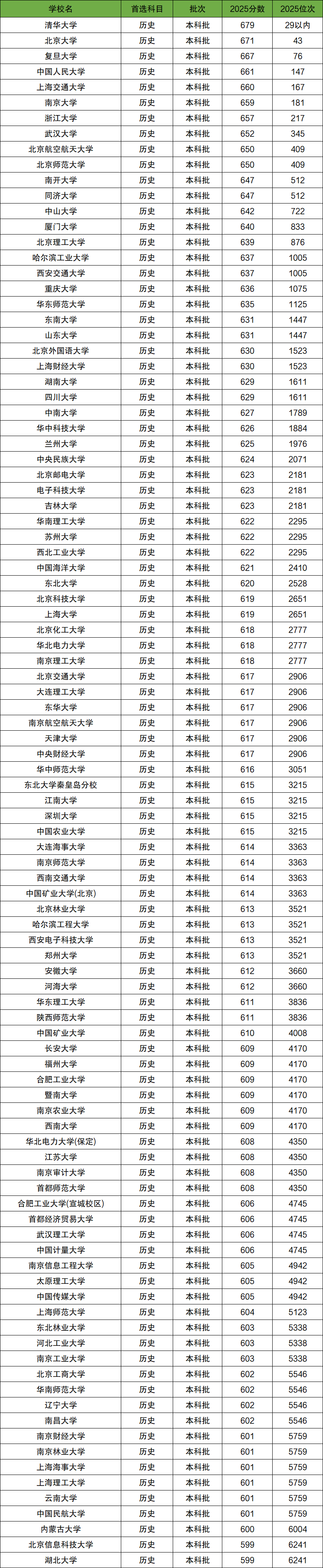 2025年全国计算机大学在河北历史类录取分数线排名前100名一览表: