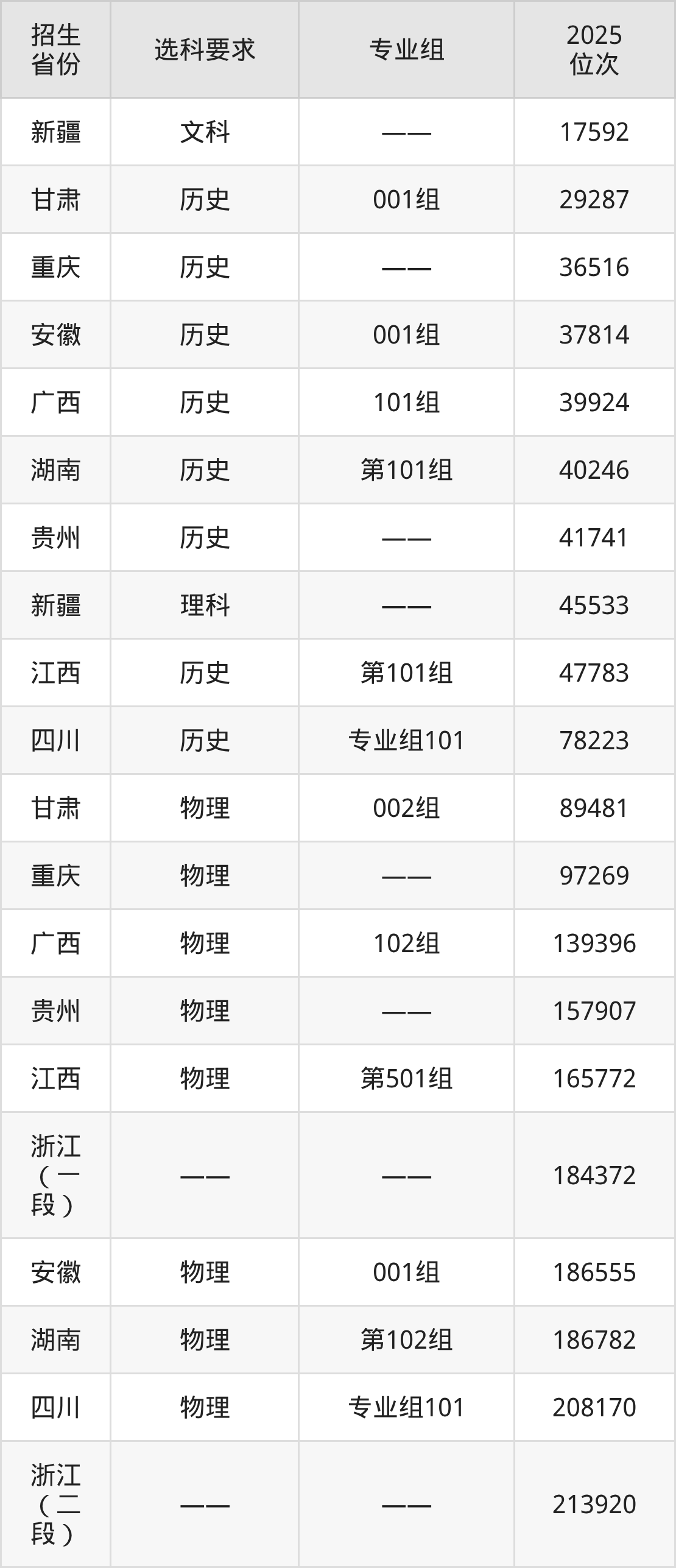 浙江工贸职业技术学院2025年在全国各省的位次差异较大,最高位次是17592位(新疆文科)、最低位次是213920位(浙江)。各省具体位次请看下图: