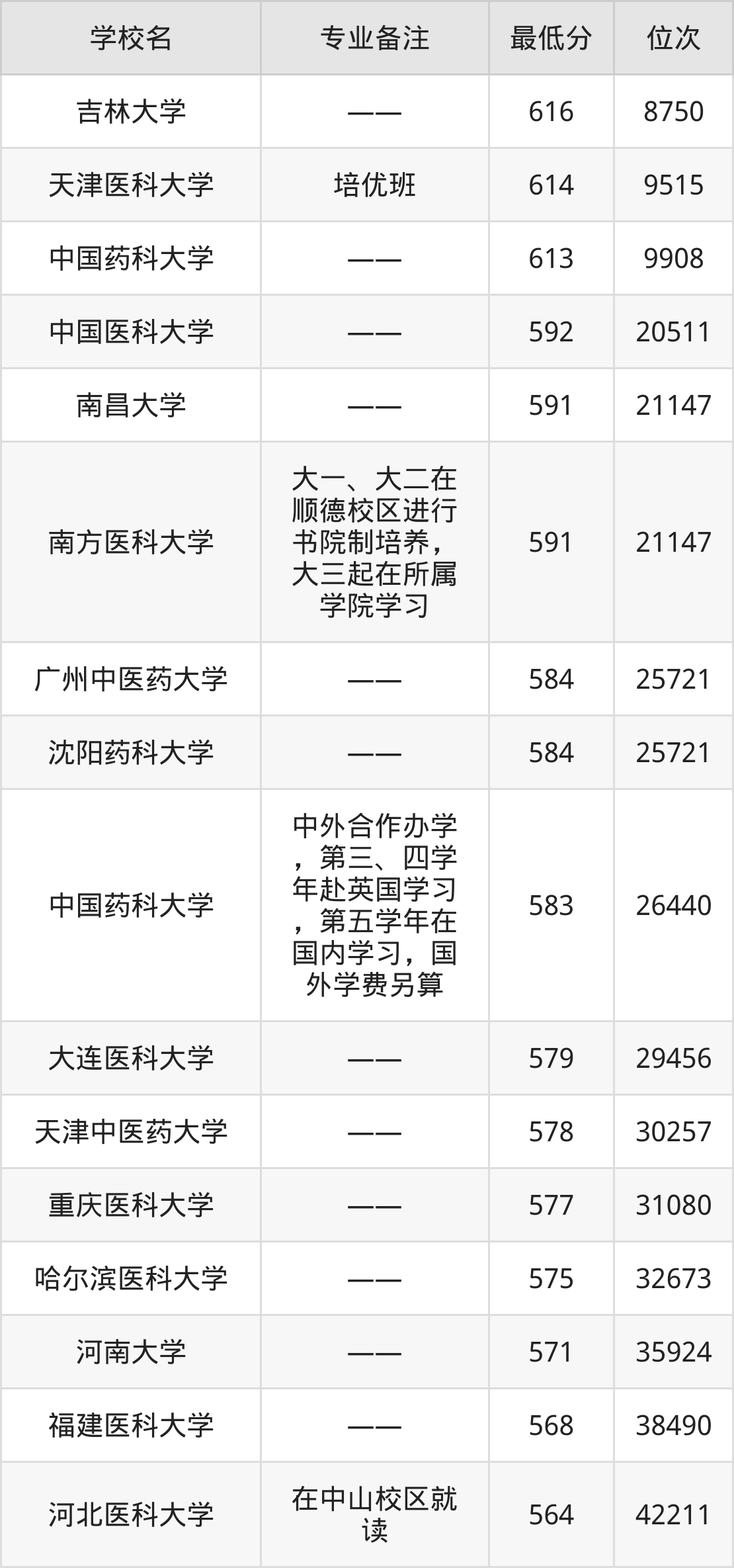 600分左右的临床药学大学有:中国医科大学592分、南昌大学591分、南方医科大学591分。