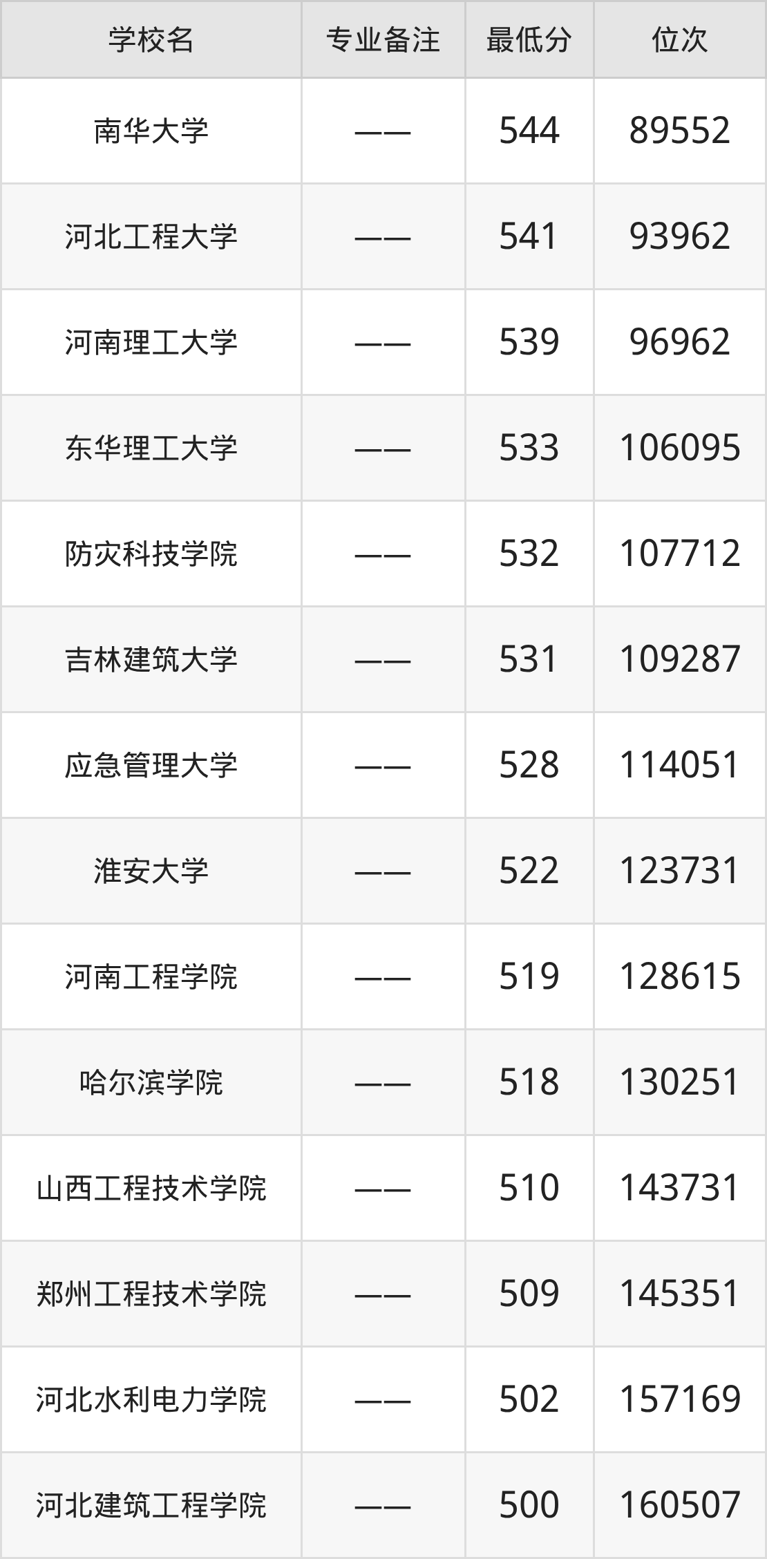 院校举例:北方工业大学、中国矿业大学(北京)、天津城建大学、河北水利电力学院、防灾科技学院、中北大学、山西工程技术学院、辽宁石油化工大学、沈阳工学院、吉林建筑大学等。