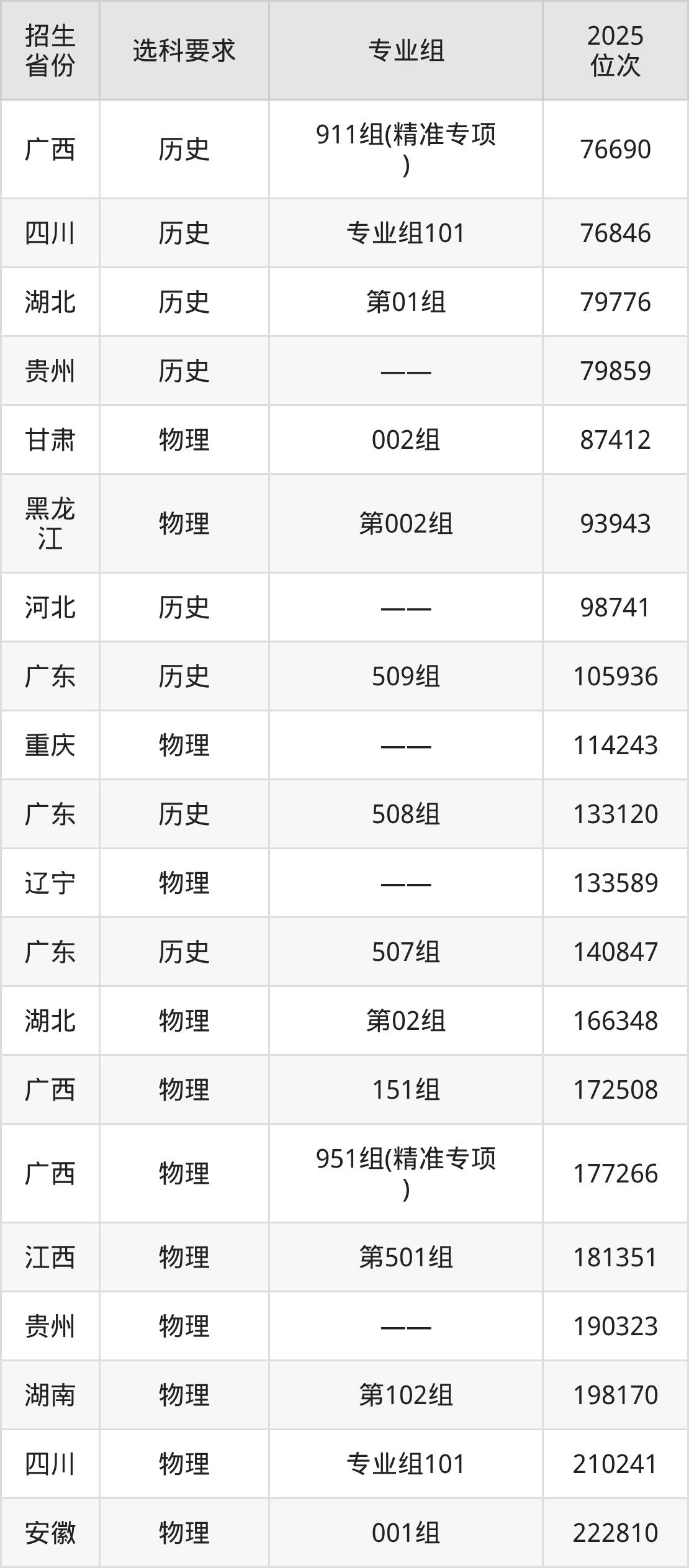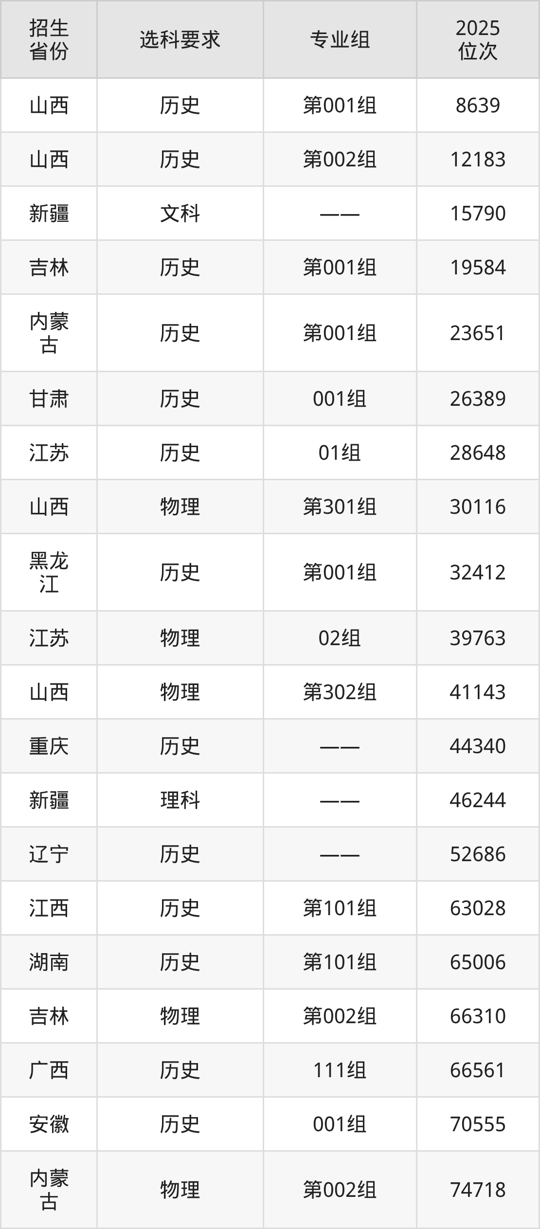 广西电力职业技术学院2025年在全国各省的位次差异较大,最高位次是8639位(山西历史类)、最低位次是550838位(山东)。各省具体位次请看下图: