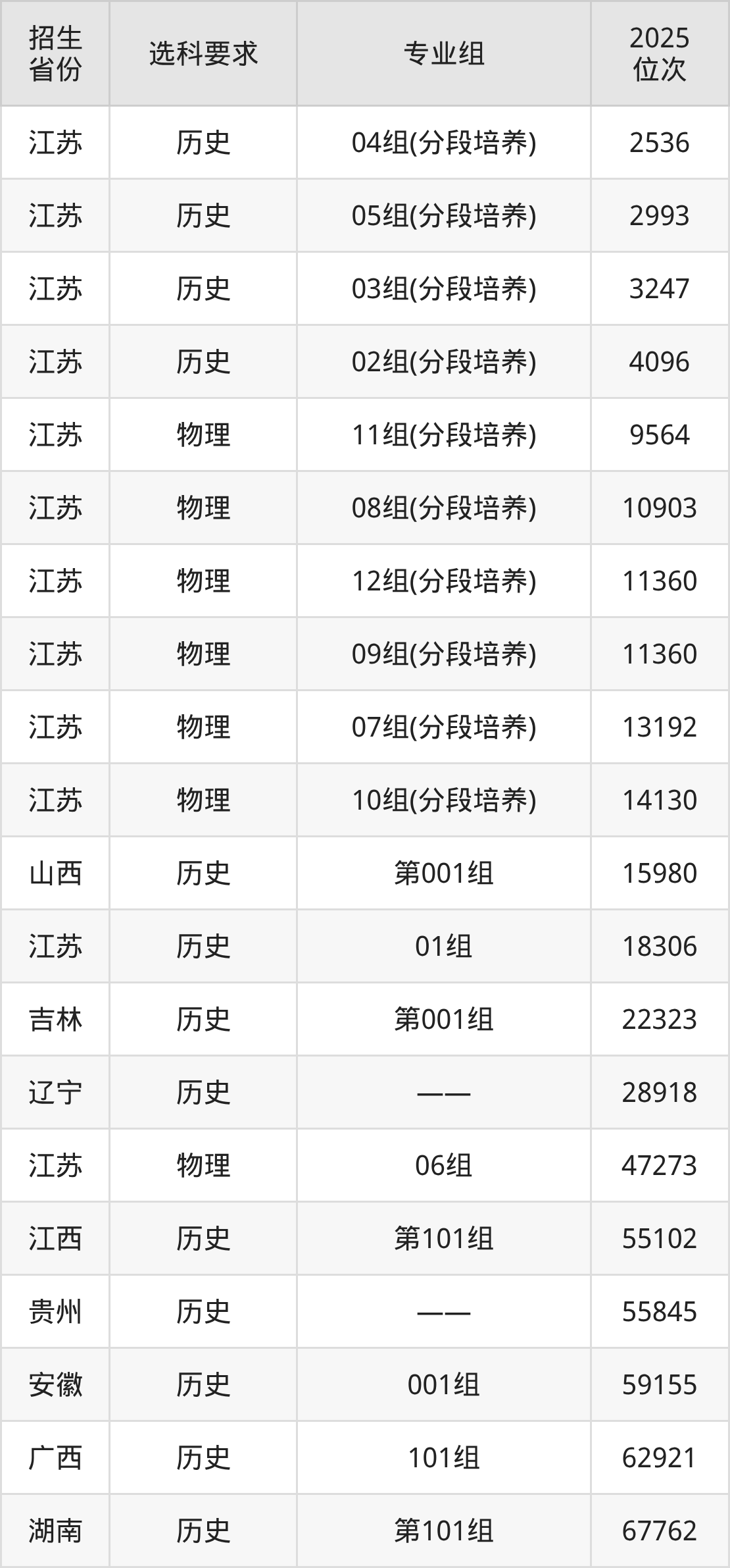 南京旅游职业学院2025年在全国各省的位次差异较大,最高位次是2536位(江苏历史类)、最低位次是399183位(山东)。各省具体位次请看下图: