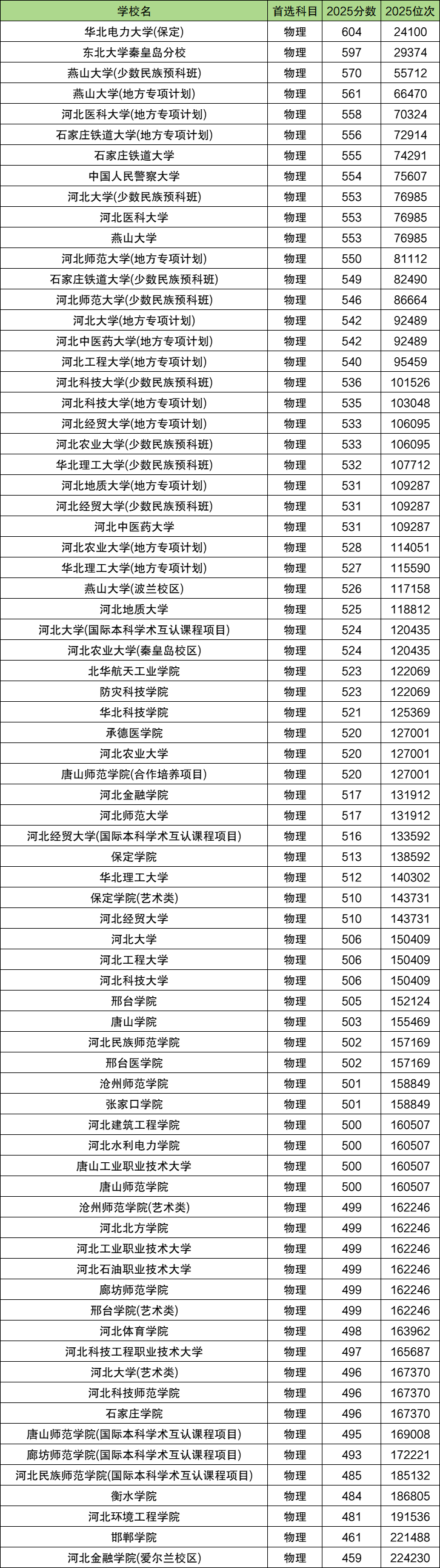 2025年河北公办本科大学在物理组录取分数线范围是459分到604分,下面分别介绍最好考和最难考的公办本科学校名单。
