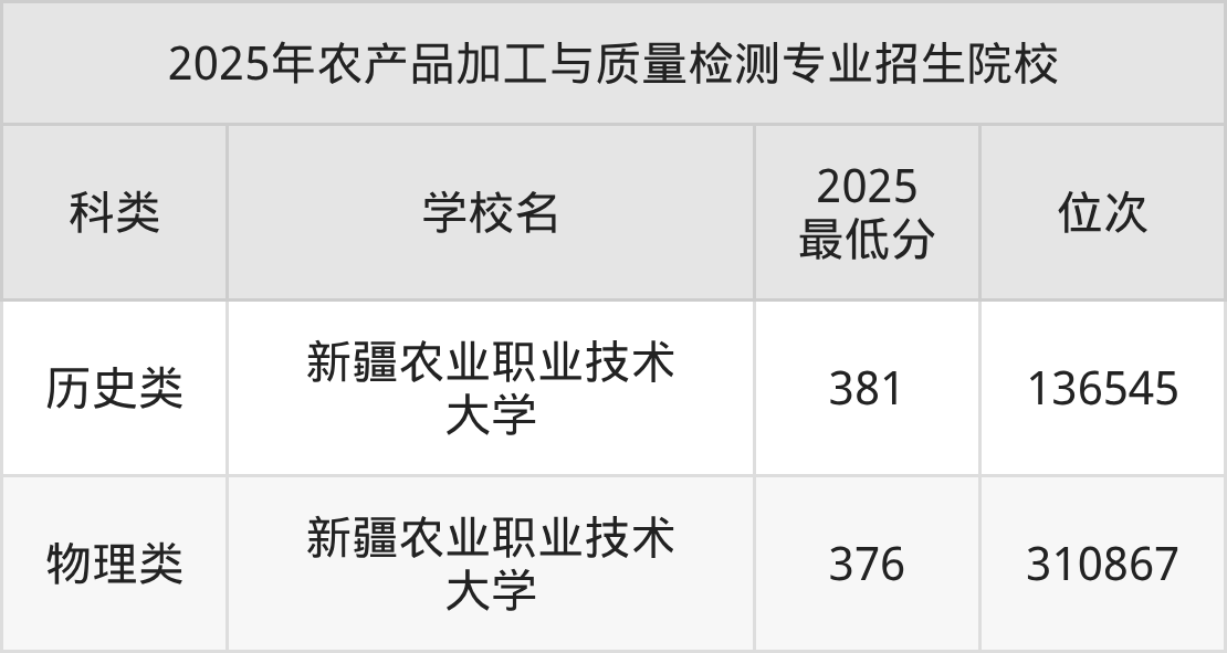 2、农产品加工与质量检测院校2025分数线