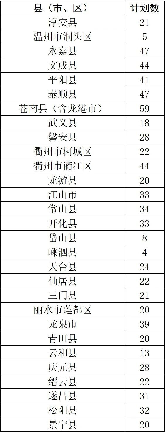 以下是浙江地方专项计划实施区域及招生计划数(下为2025年数据,仅供参考):