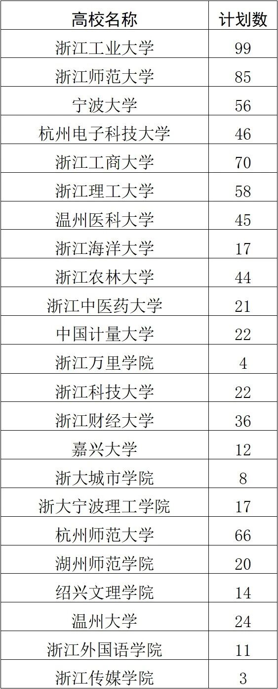 根据浙江考试官微发布最新一年信息,浙江地方专项计划实施院校共有23所,包括浙江工业大学、浙江师范大学、杭州电子科技大学、宁波大学、浙江理工大学、中国计量大学、温州医科大学、浙江财经大学等。
