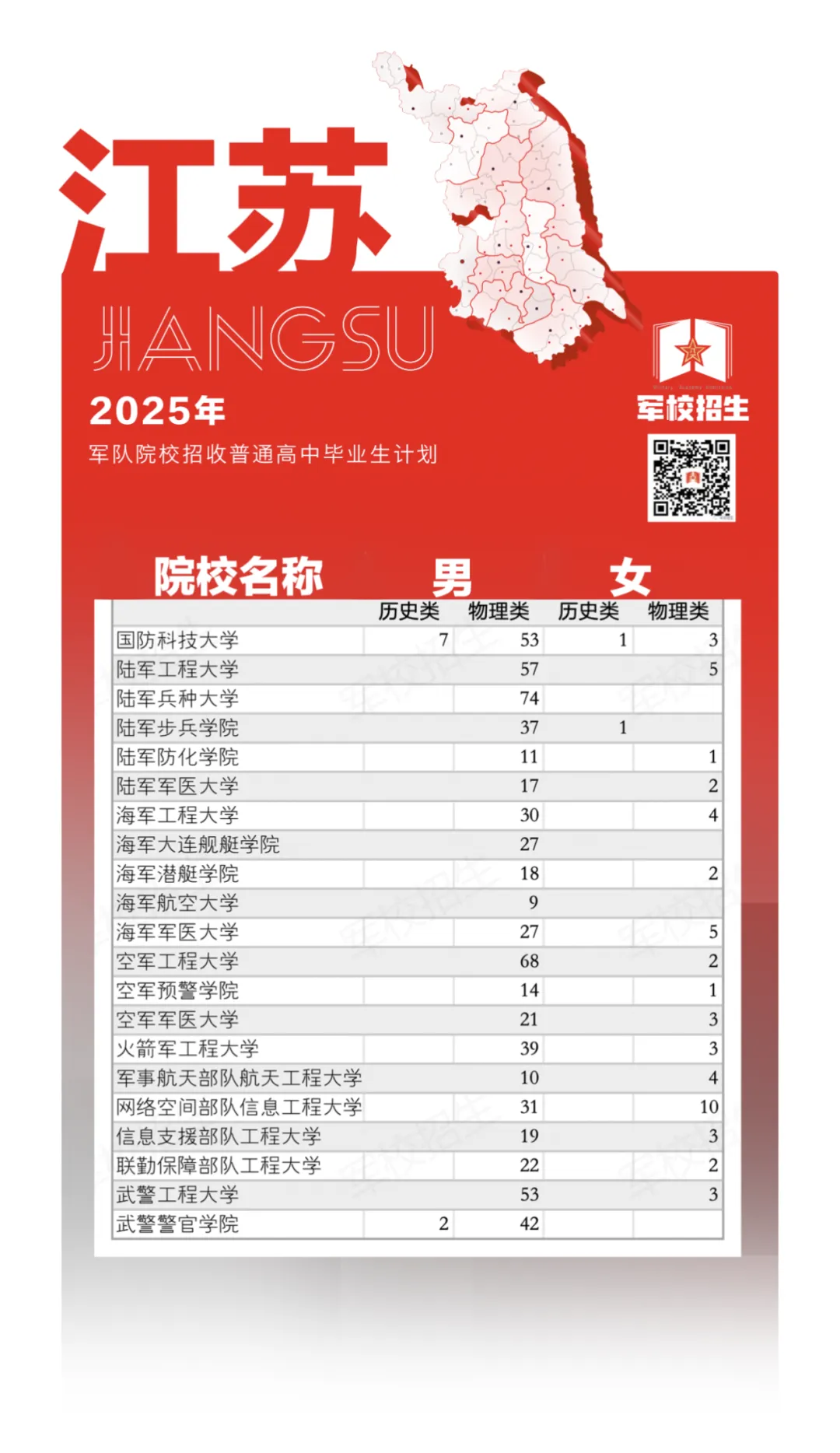 三、2025江苏军校招生计划