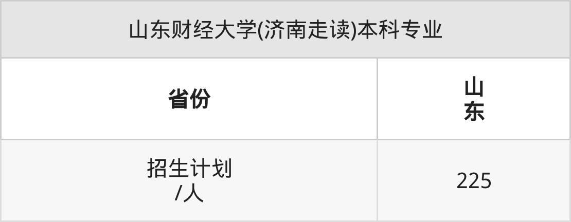 山东财经大学(济南走读)面向山东(225人)开展本科招生。招生批次为一段。