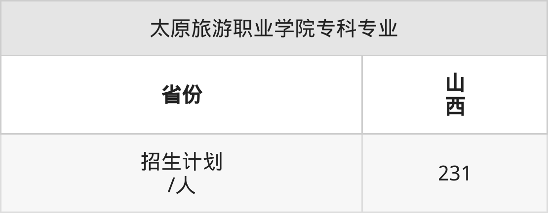 太原旅游职业学院面向山西(231人)开展专科招生。招生批次为专科批。
