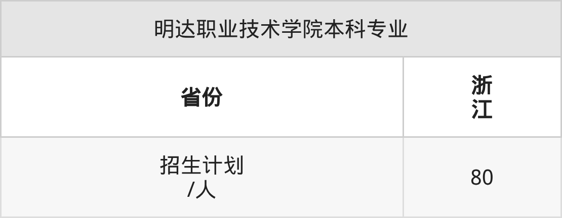 明达职业技术学院面向浙江(80人)开展本科招生。