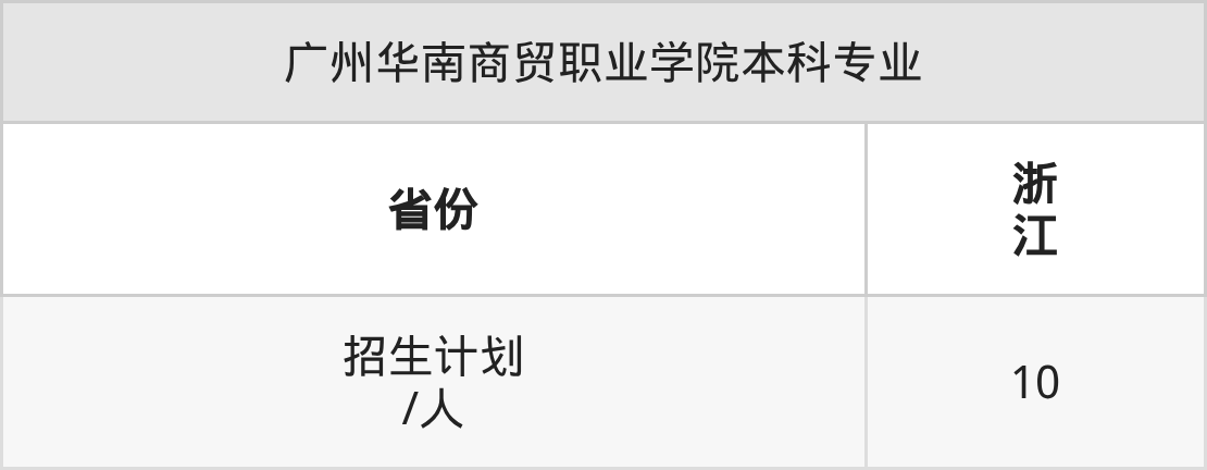 广州华南商贸职业学院面向浙江(10人)开展本科招生。