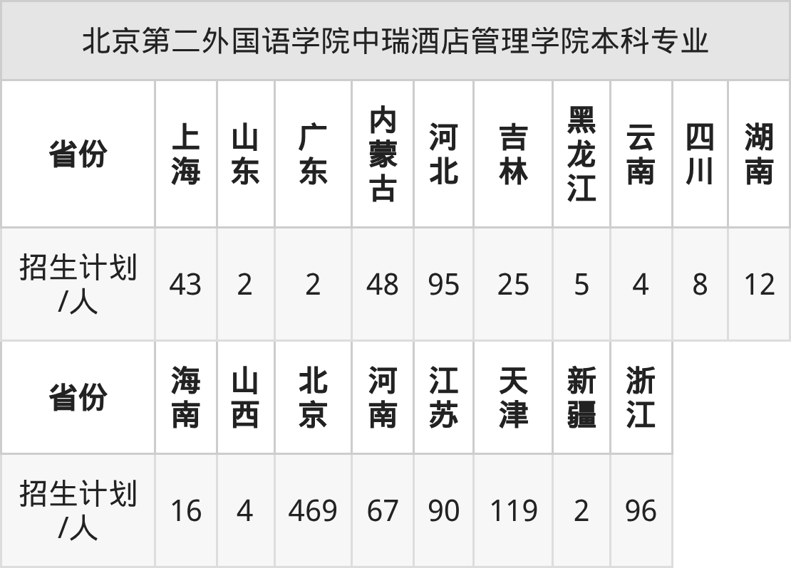 本文将详细介绍北京第二外国语学院中瑞酒店管理学院最新招生计划、招生省份以及选科要求等信息。