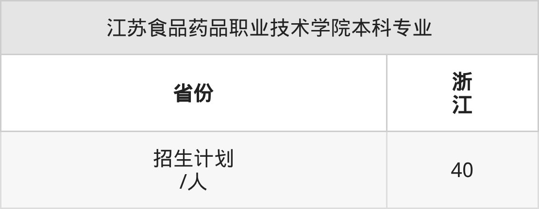 江苏食品药品职业技术学院面向浙江(40人)开展本科招生。
