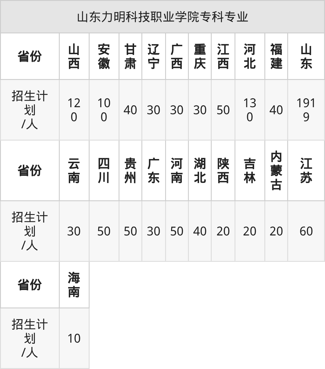 山东力明科技职业学院面向浙江(40人)开展本科招生。