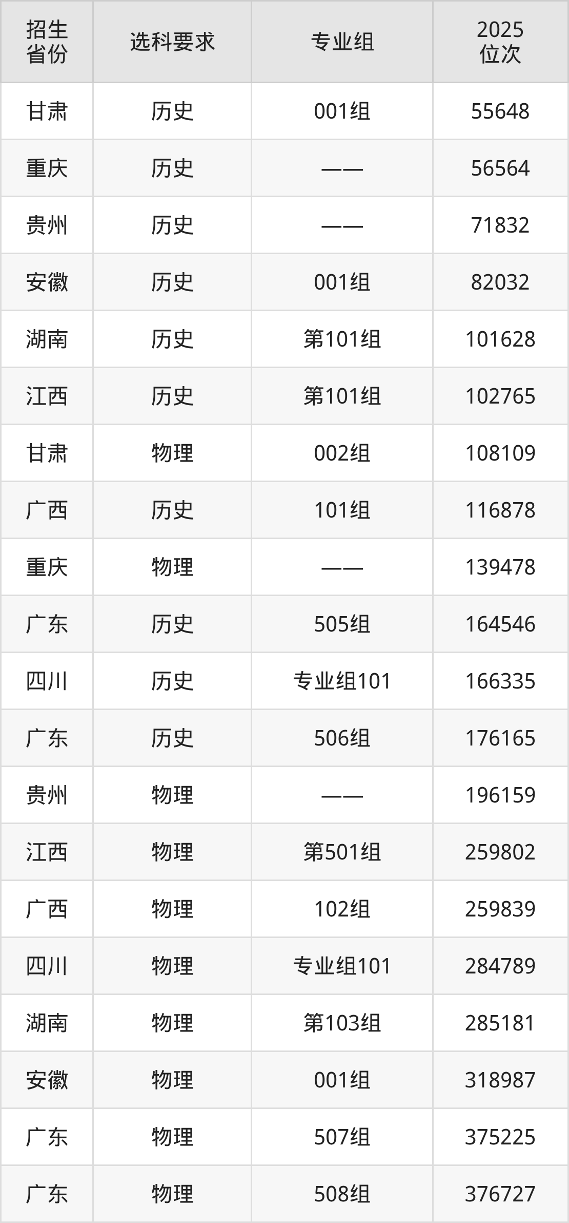 湖南幼儿师范高等专科学校2025年在全国各省的位次差异较大,最高位次是55648位(甘肃历史类)、最低位次是586805位(山东)。各省具体位次请看下图: