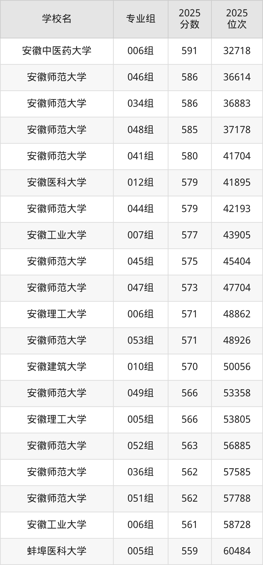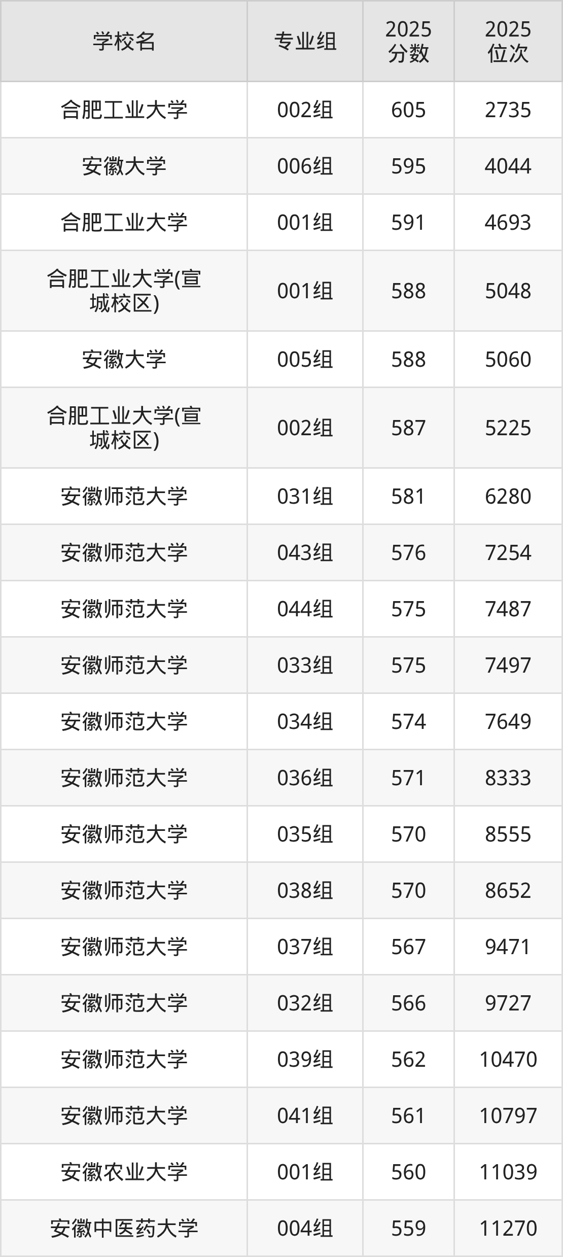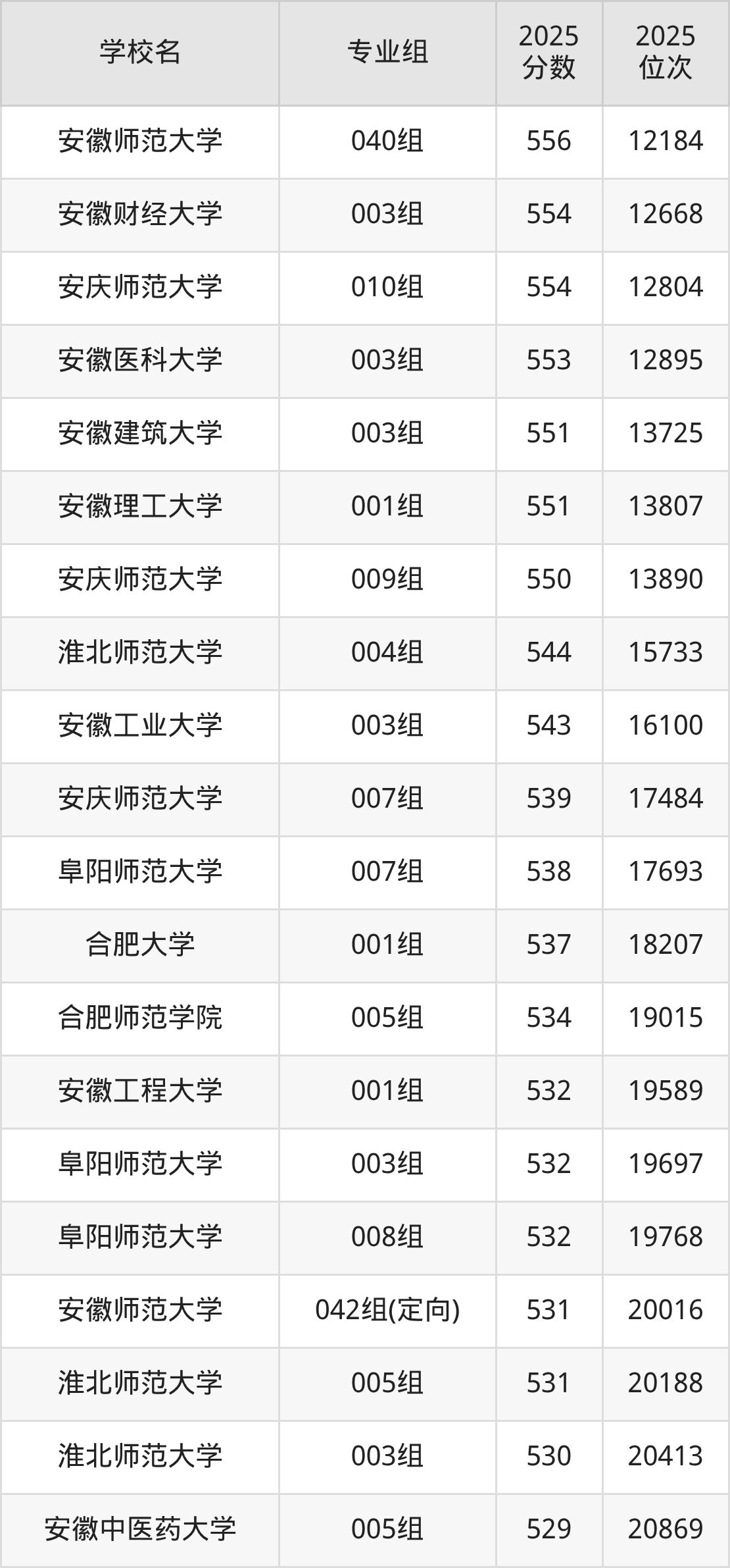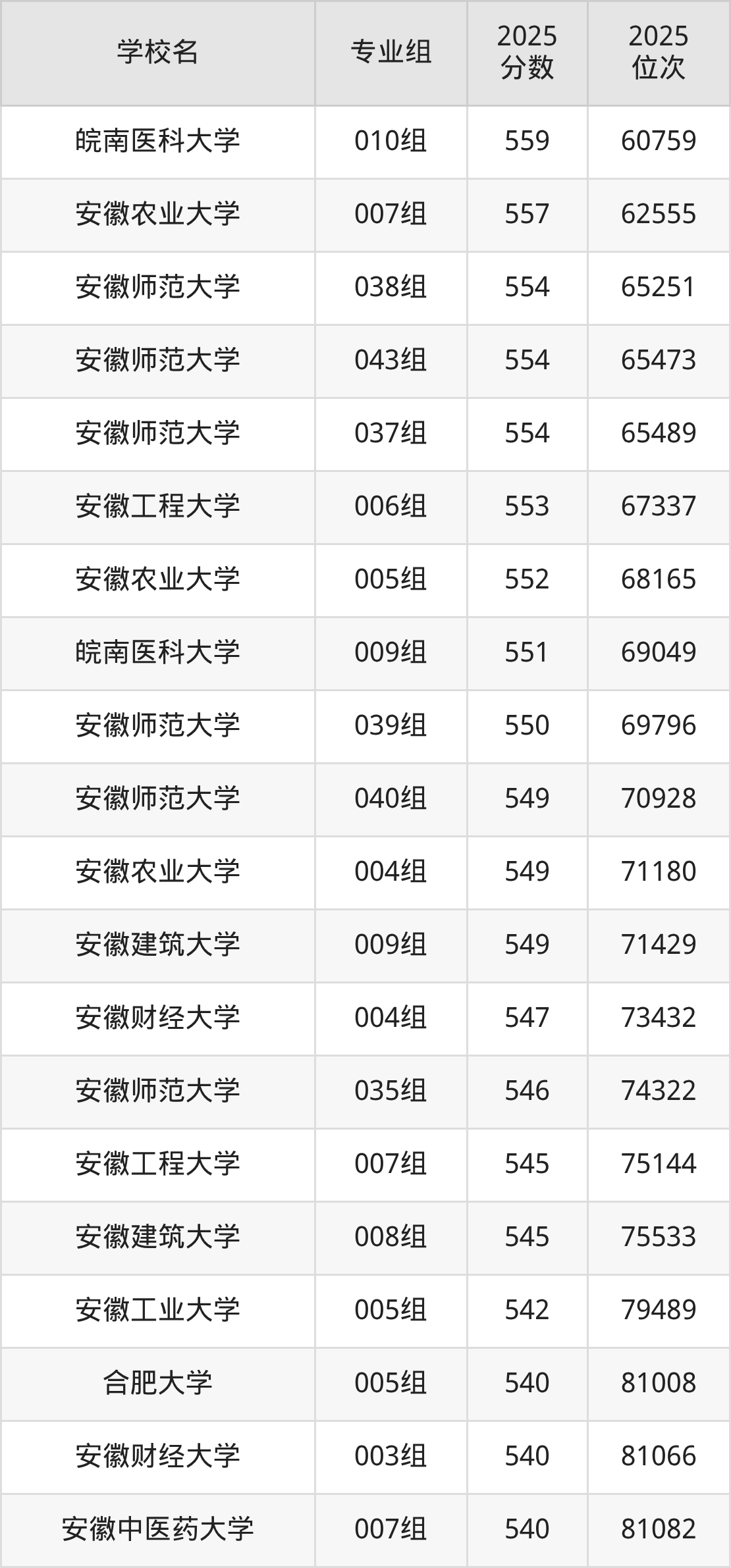 安徽省所有公办本科院校2025年录取分数线一览表: