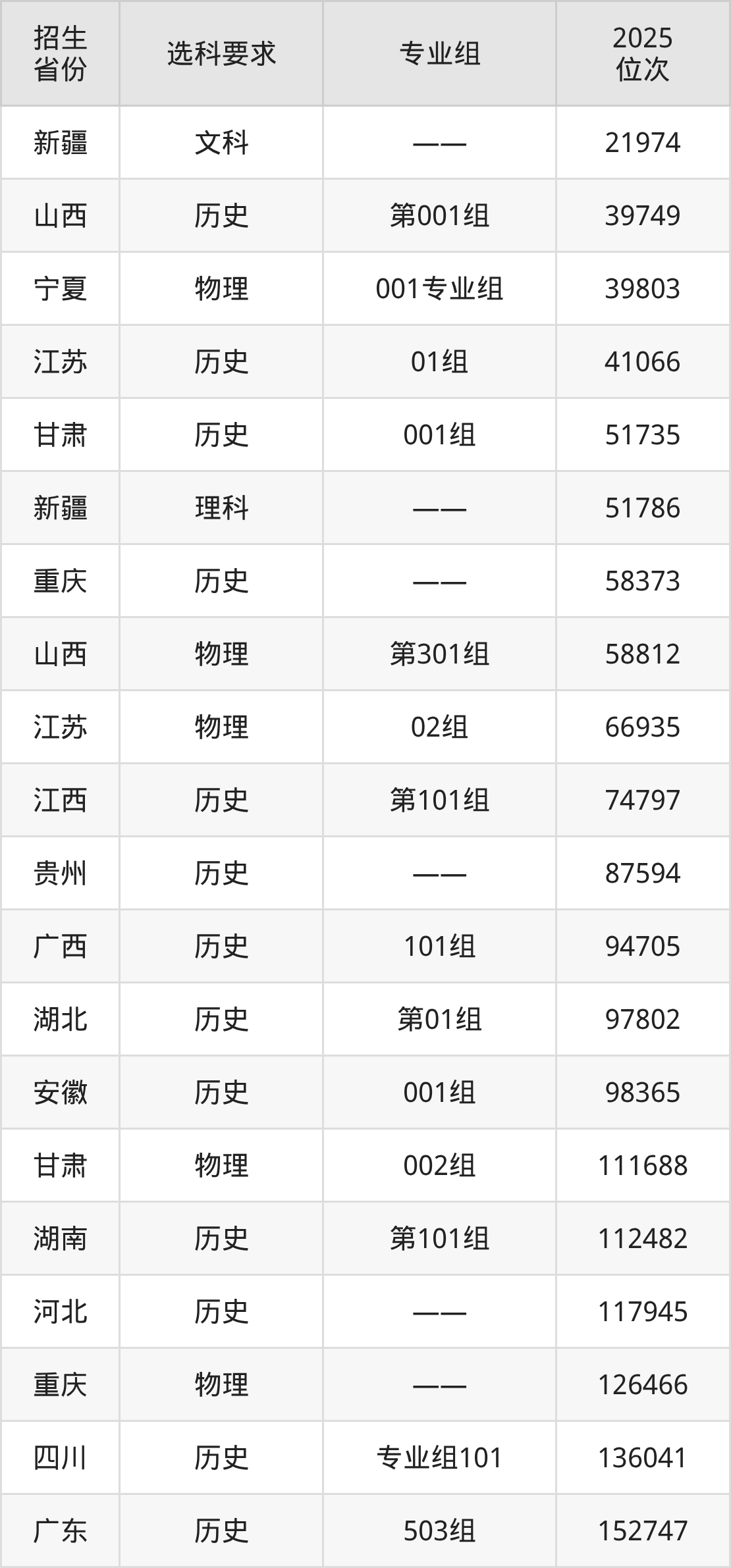 泉州经贸职业技术学院2025年在全国各省的位次差异较大,最高位次是21974位(新疆文科)、最低位次是363806位(广东物理类)。各省具体位次请看下图: