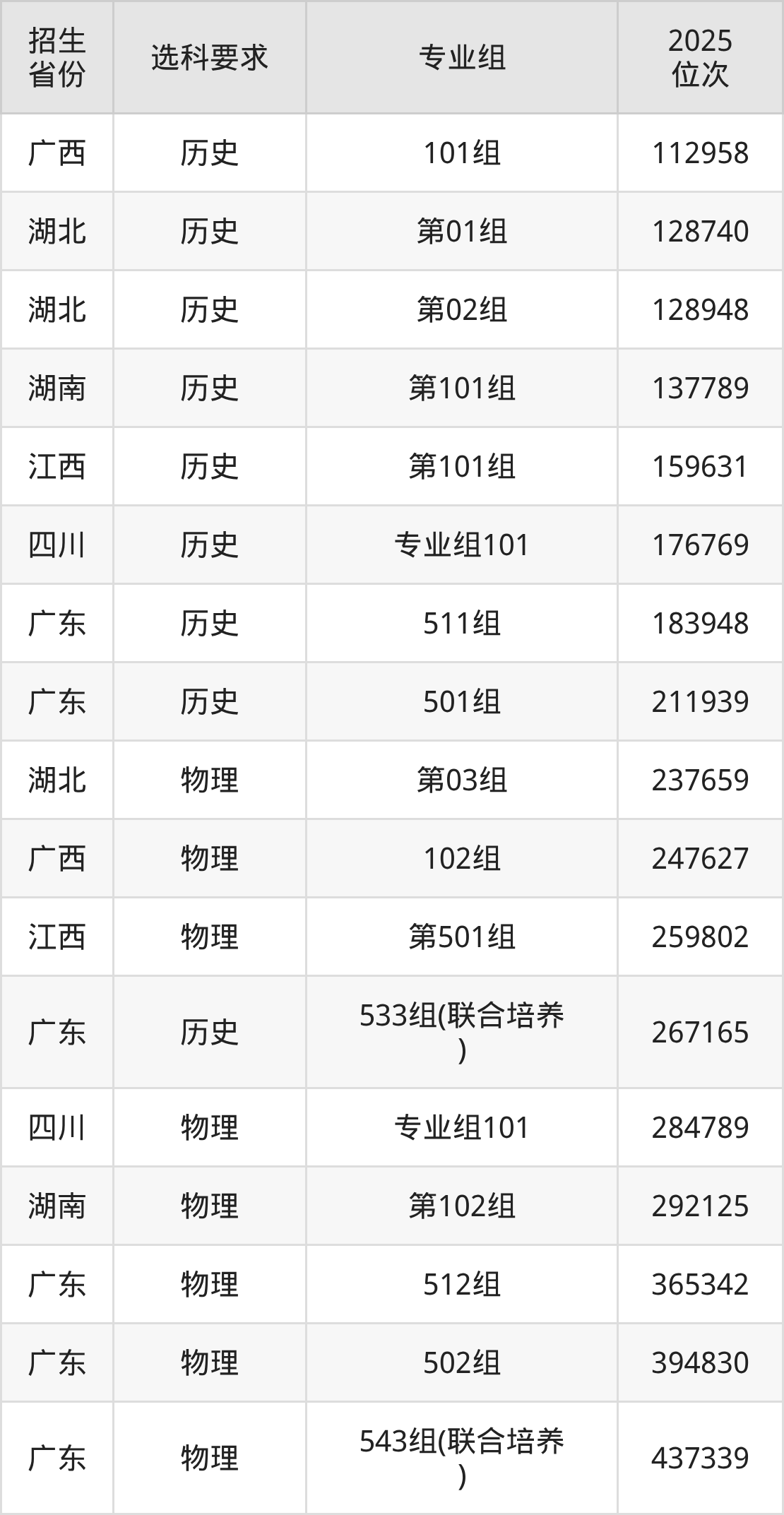 广州松田职业学院2025年在全国各省的位次差异较大,最高位次是112958位(广西历史类)、最低位次是437339位(广东物理类)。各省具体位次请看下图: