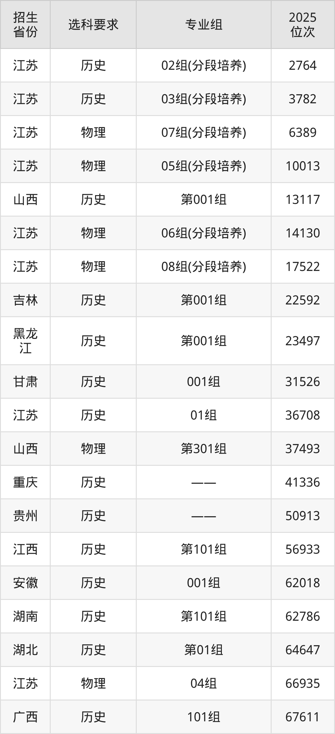 南通师范高等专科学校2025年在全国各省的位次差异较大,最高位次是2764位(江苏历史类)、最低位次是375769位(广东物理类)。各省具体位次请看下图: