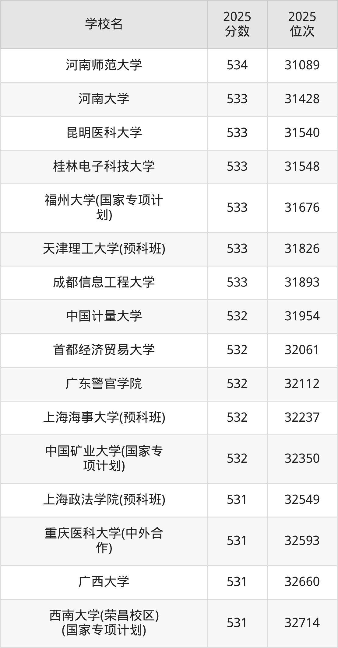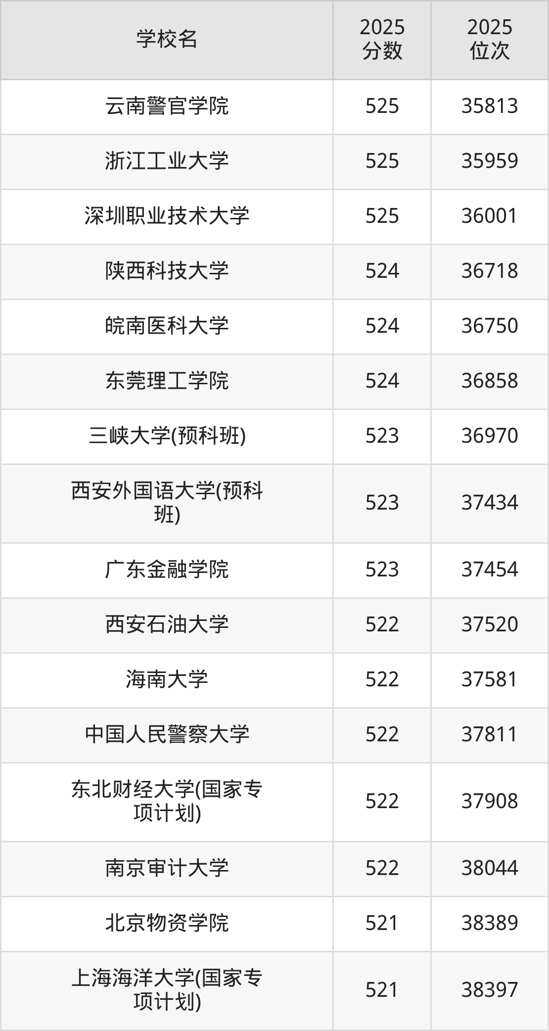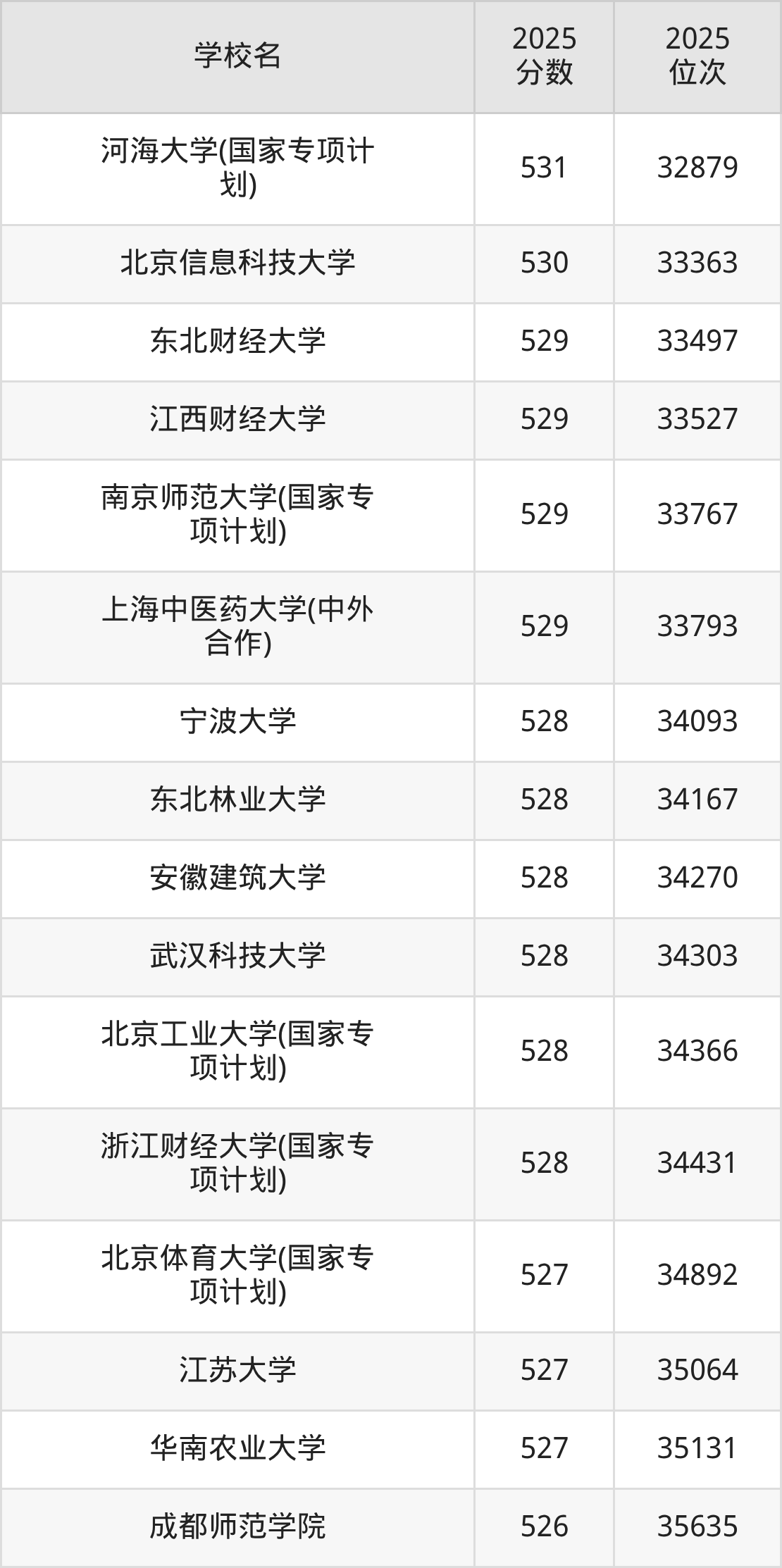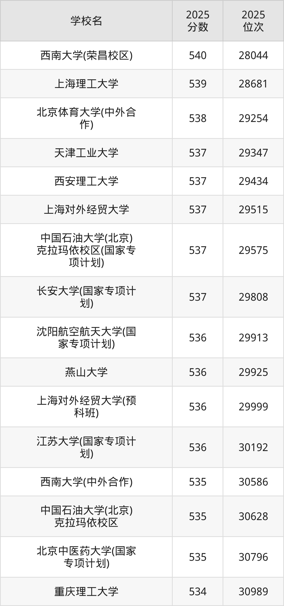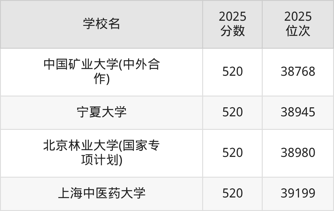 | 学校名 | 2025 分数 | 2025 位次 |