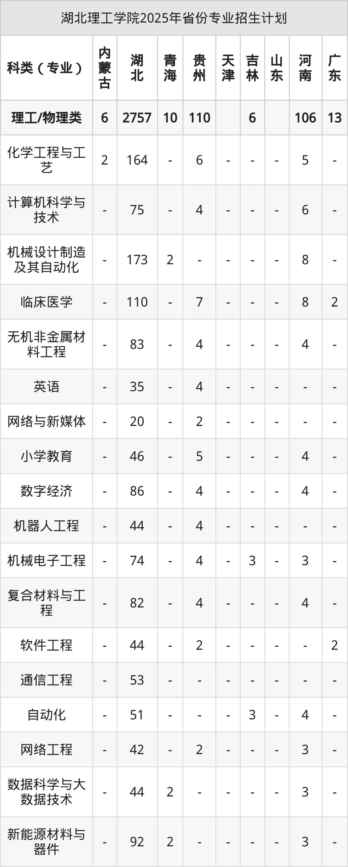 2026年湖北理工学院本科招生计划待公布,下面附上2025年数据,暂供参考:
