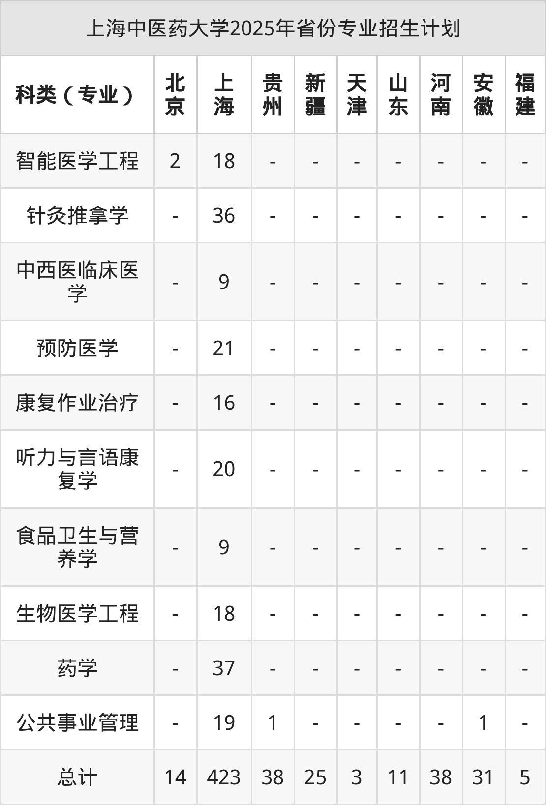 2026年上海中医药大学本科招生计划待公布,下面附上2025年数据,暂供参考: